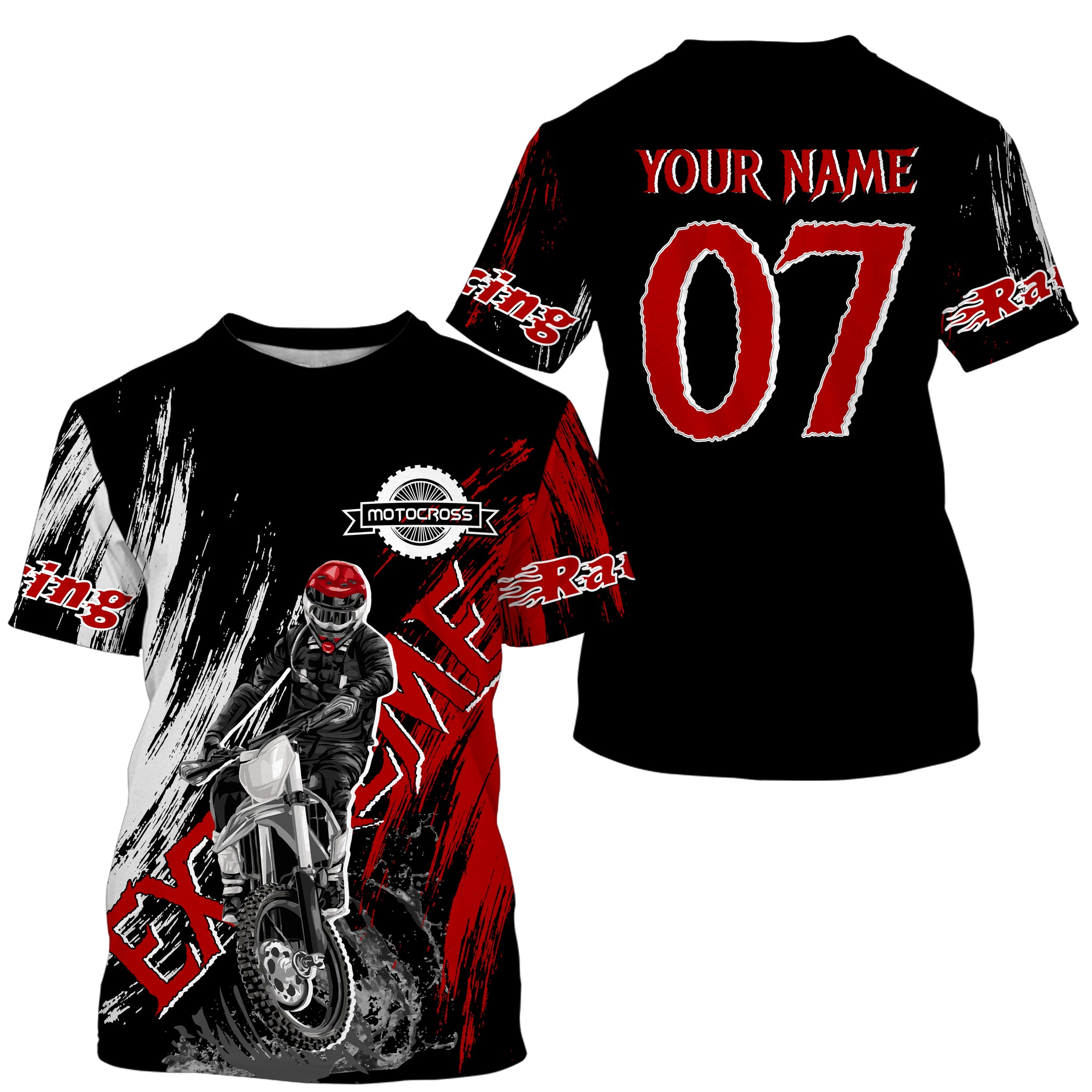 Motocross off-road jersey black red UPF30+ youth adult custom dirt bike racing long sleeve shirt PDT188