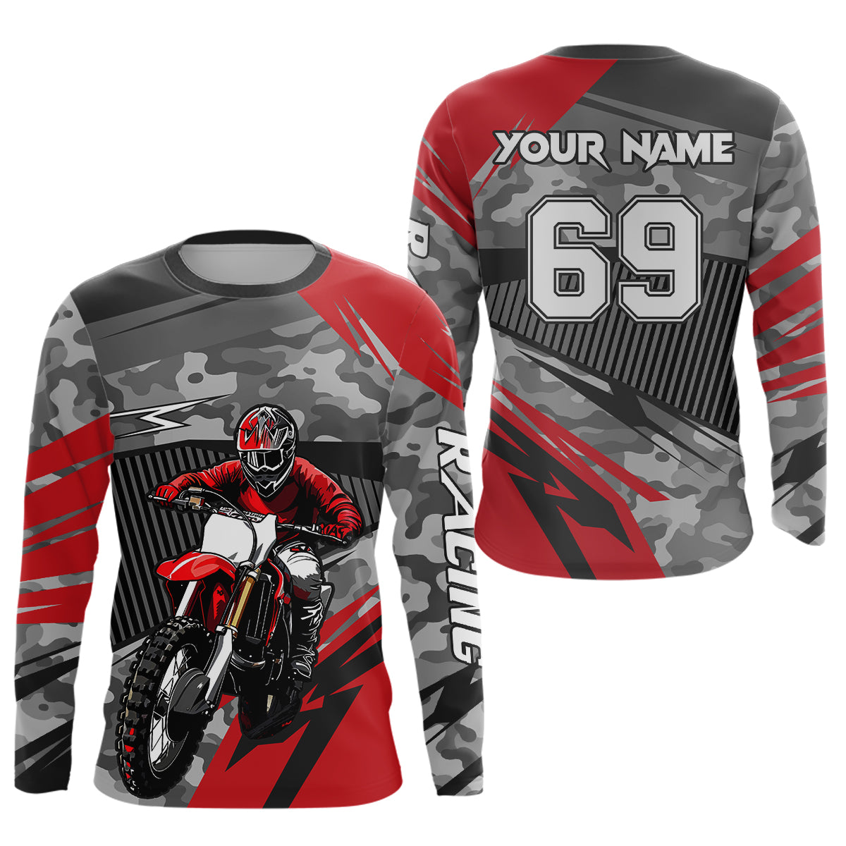 Motocross Racing Jersey Red Upf30+ Dirt Bike Off-Road Shirt Motorcycle Kid Men Women XM282