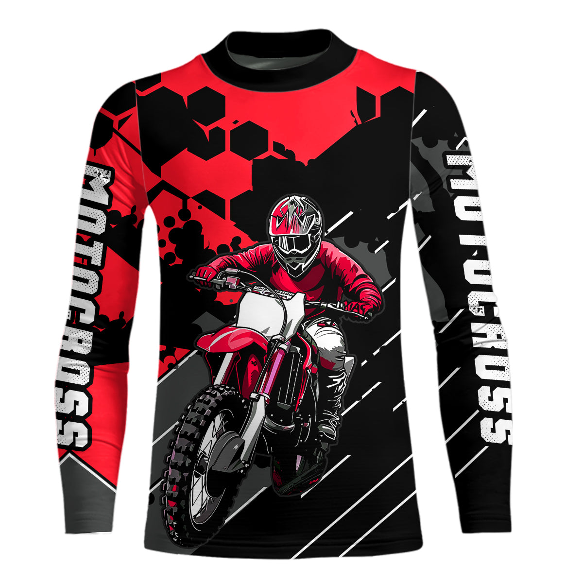 Motocross Racing Jersey Red Upf30+ Motorcycle Dirt Bike Jersey Off-Road Shirt Men Kid Women XM298