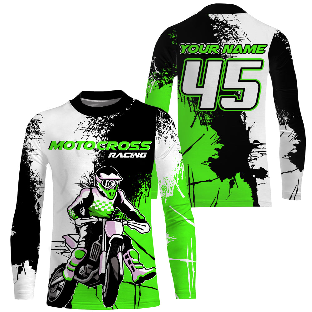 MX Jersey Kid Men Women UPF30+ Custom Dirt Bike Shirt Green Motocross Racing Off-Road Motorcycle PDT591