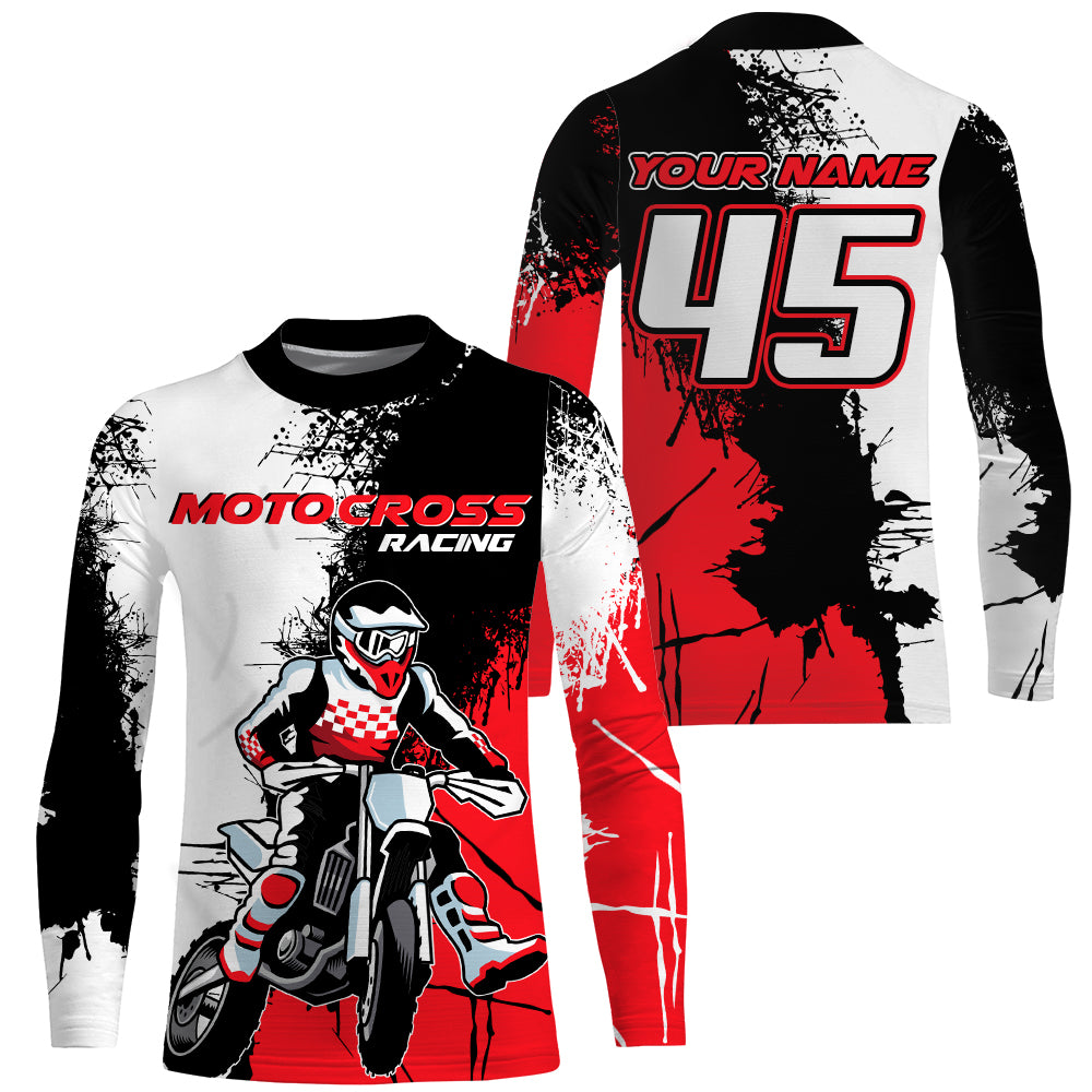 MX Jersey Kid Men Women UPF30+ Custom Dirt Bike Shirt Red Motocross Racing Off-Road Long Sleeve PDT530