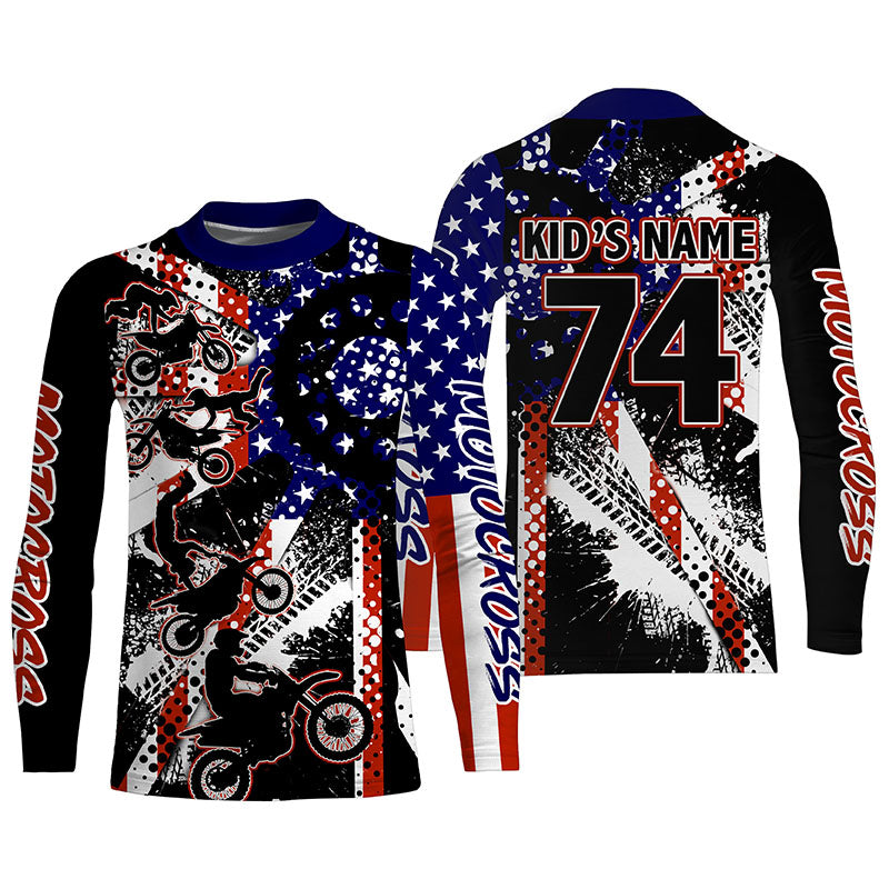 Patriotic dirt bike freestyle kid men women custom MX jersey UPF30+ USA Motocross gear racing shirt PDT349