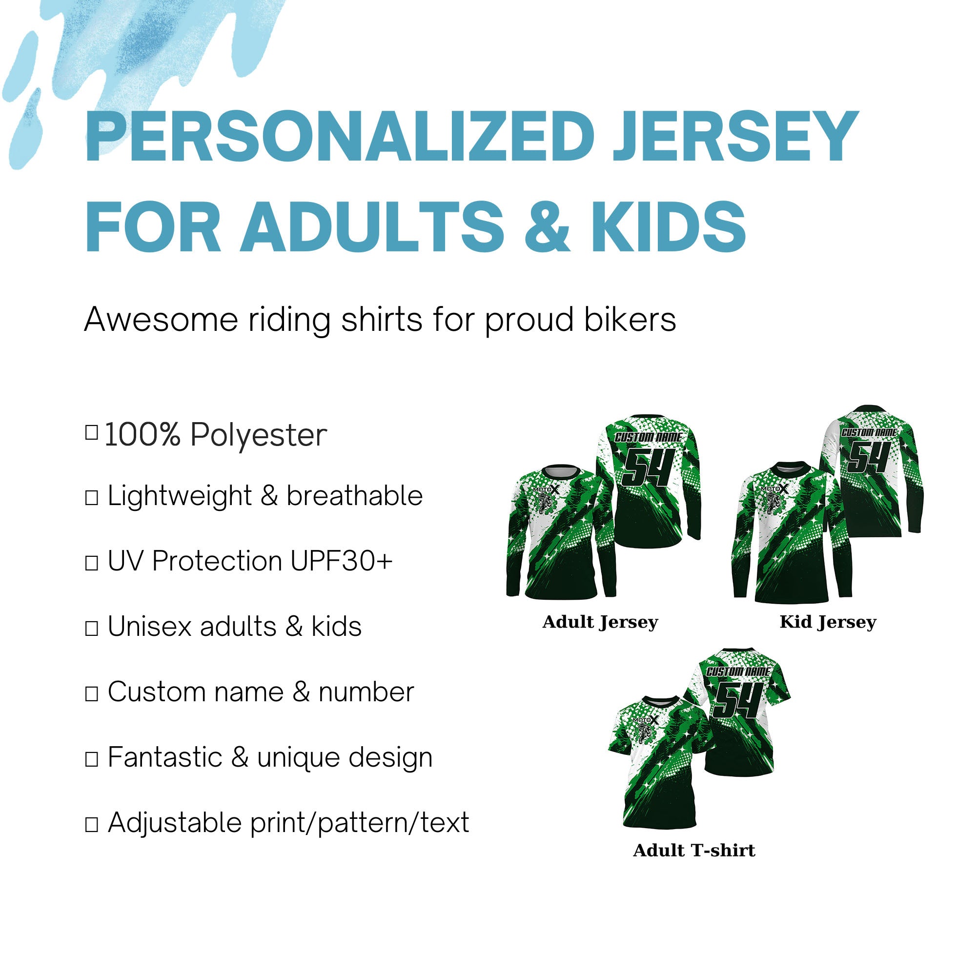 • PERSONALIZED RIDING JERSEY: This super cool shirt is exactly what all bikers are looking for. Add your name/number to make it a unique one that bears your own imprints.