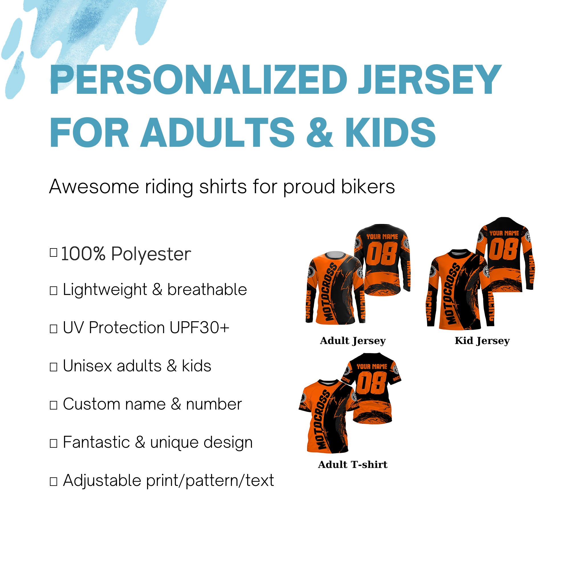 - PERSONALIZED RIDING JERSEY: This super cool shirt is exactly what all bikers are looking for. Add your name/number to make it a unique one that bears your own imprints.