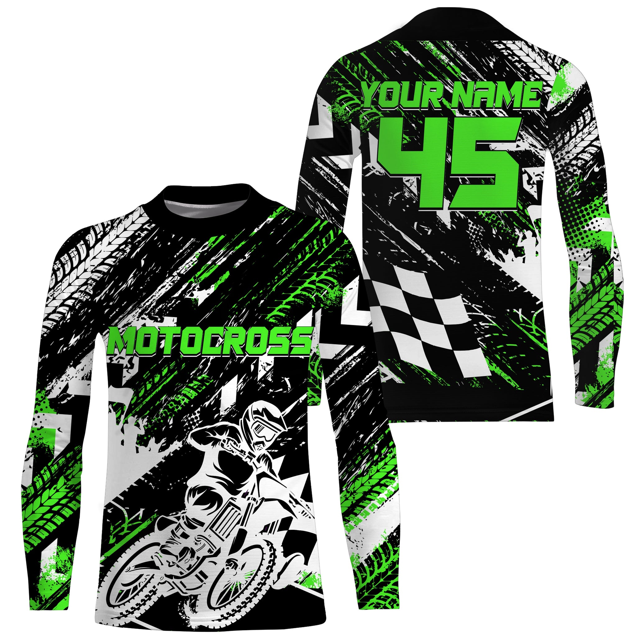 Personalized Motocross Jersey Green UPF30+ Women Kid Men Dirt Bike Off-Road Jersey Motorcycle Shirt PDT663