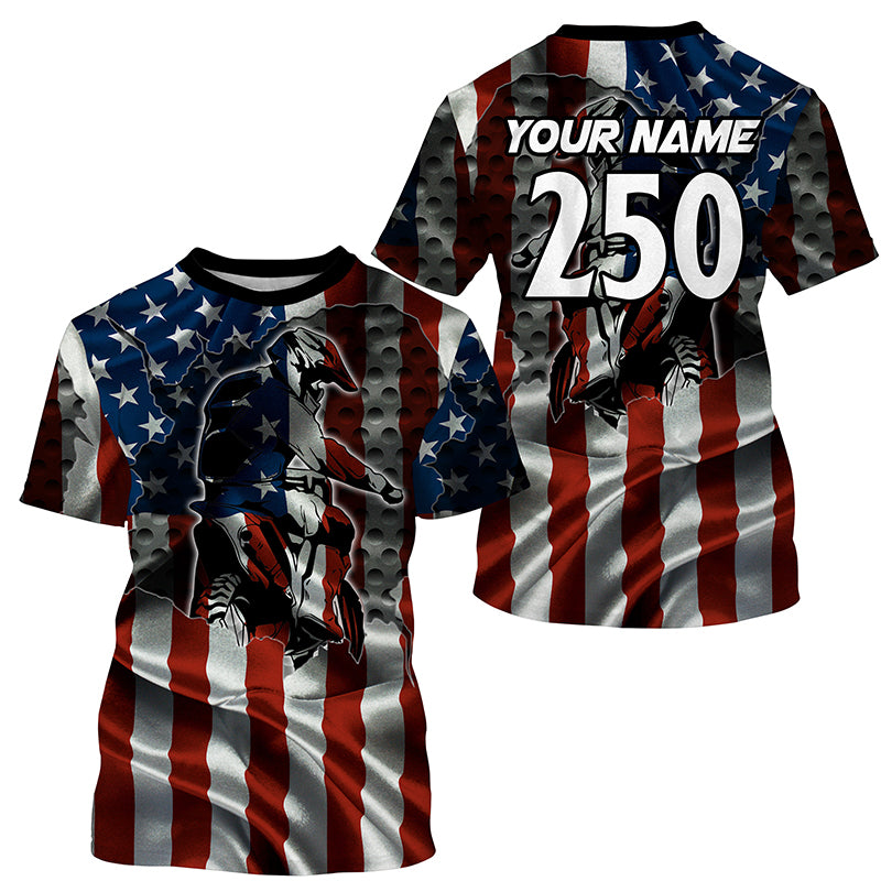 Personalized Motocross jersey kid men women UPF30+ USA flag dirt bike Patriotic shirt motorcycle PDT344