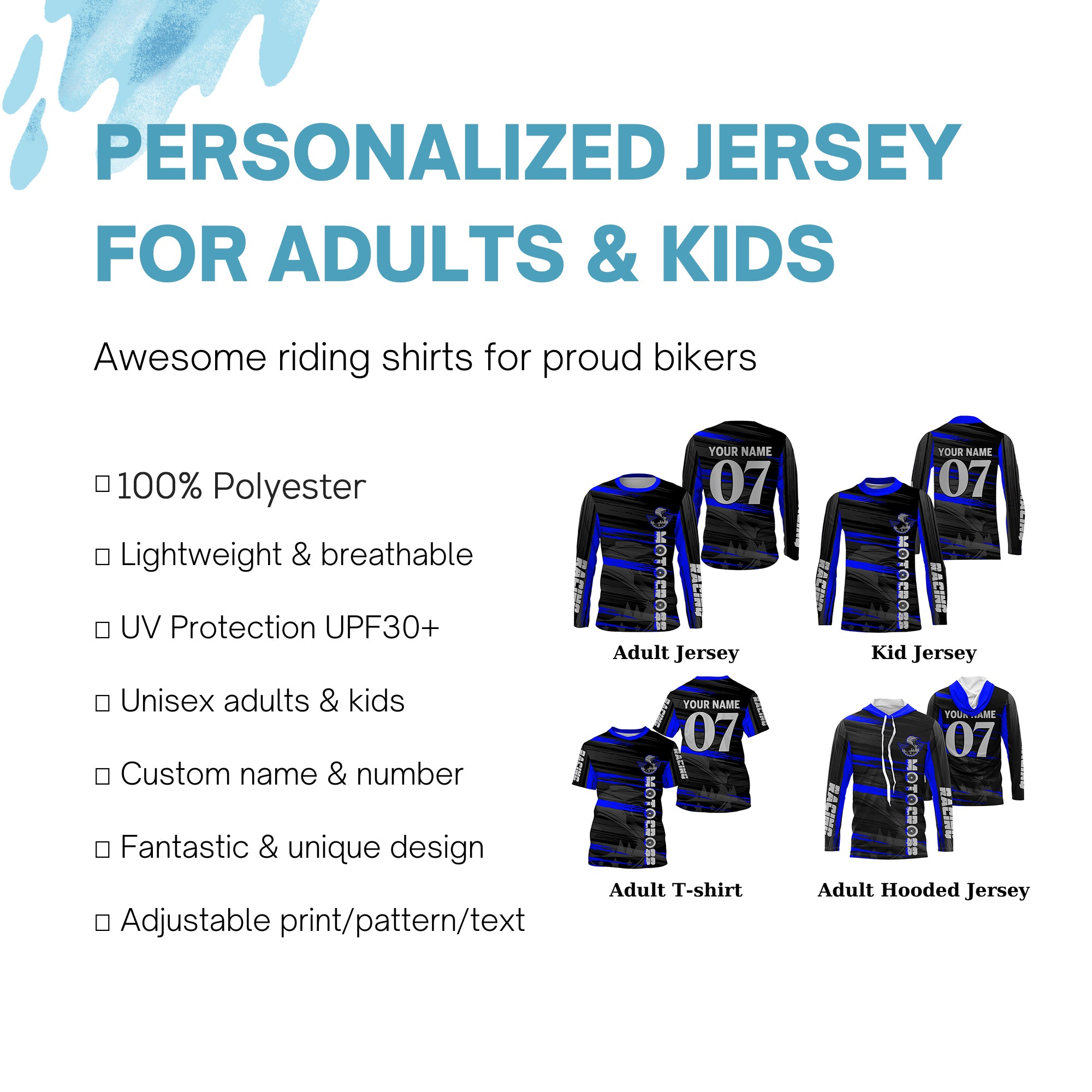 - PERSONALIZED RIDING JERSEY: This super cool shirt is exactly what all bikers are looking for. Add your name/number to make it a unique one that bears your own imprints.