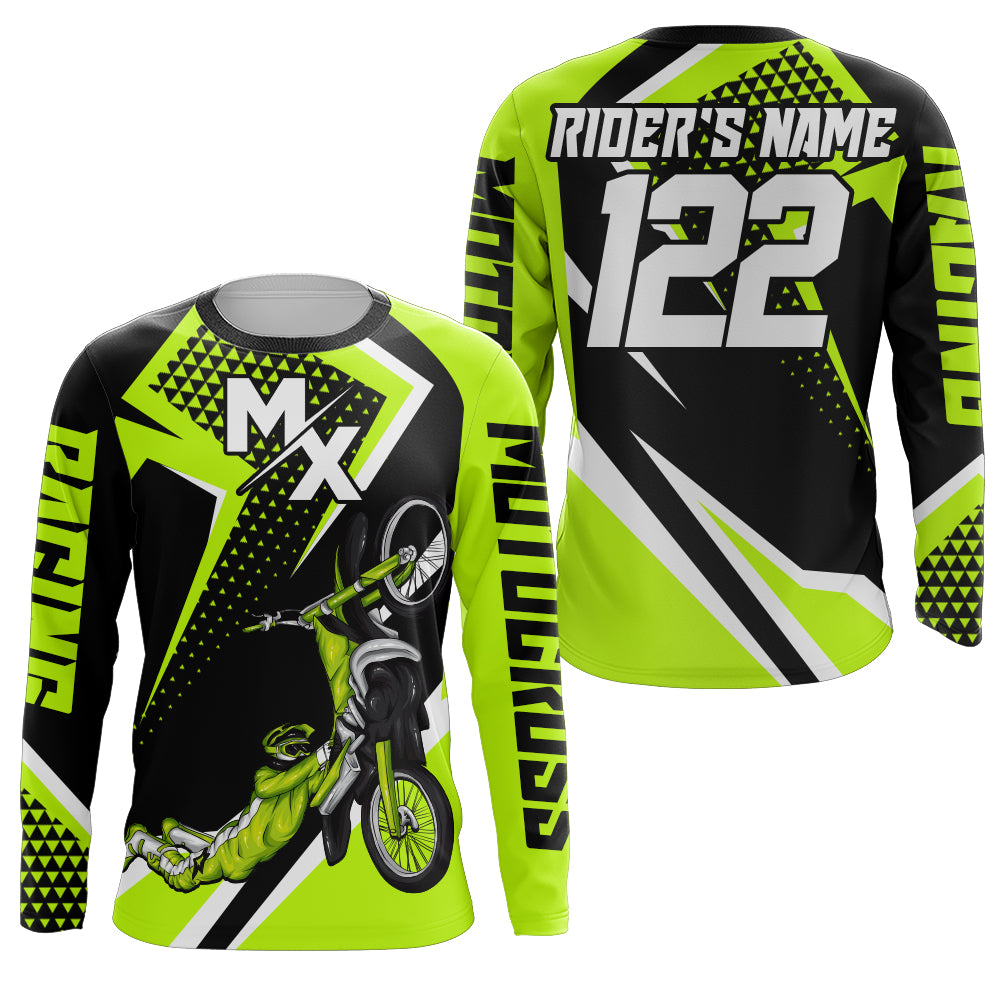 Personalized MX Jersey Kid Men Women UPF30+ Dirt Bike Shirt Freestyle Green Motocross Off-Road PDT611