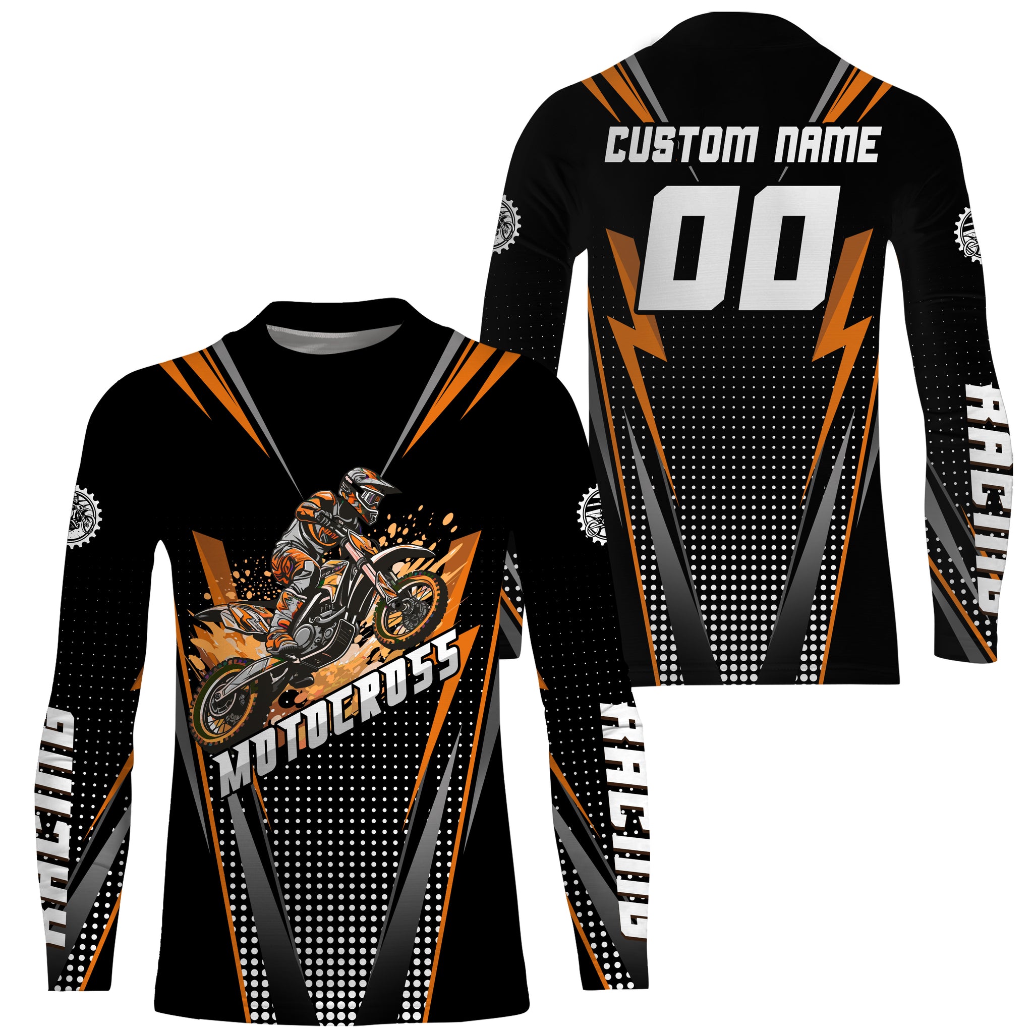 Personalized Orange Motocross Jersey Kid&Adult Upf30+ Dirt Bike Shirt Off-Road Motorcycle Racing PDT671