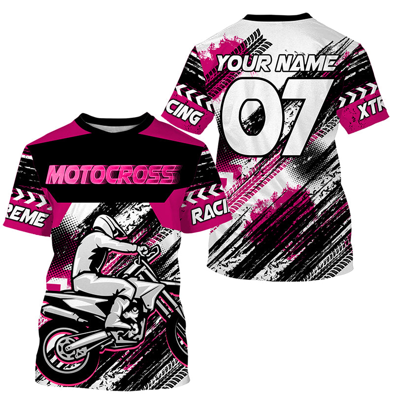 Pink custom Motocross jersey uv protective MX shirt for kid men women dirt bike racing racewear PDT295