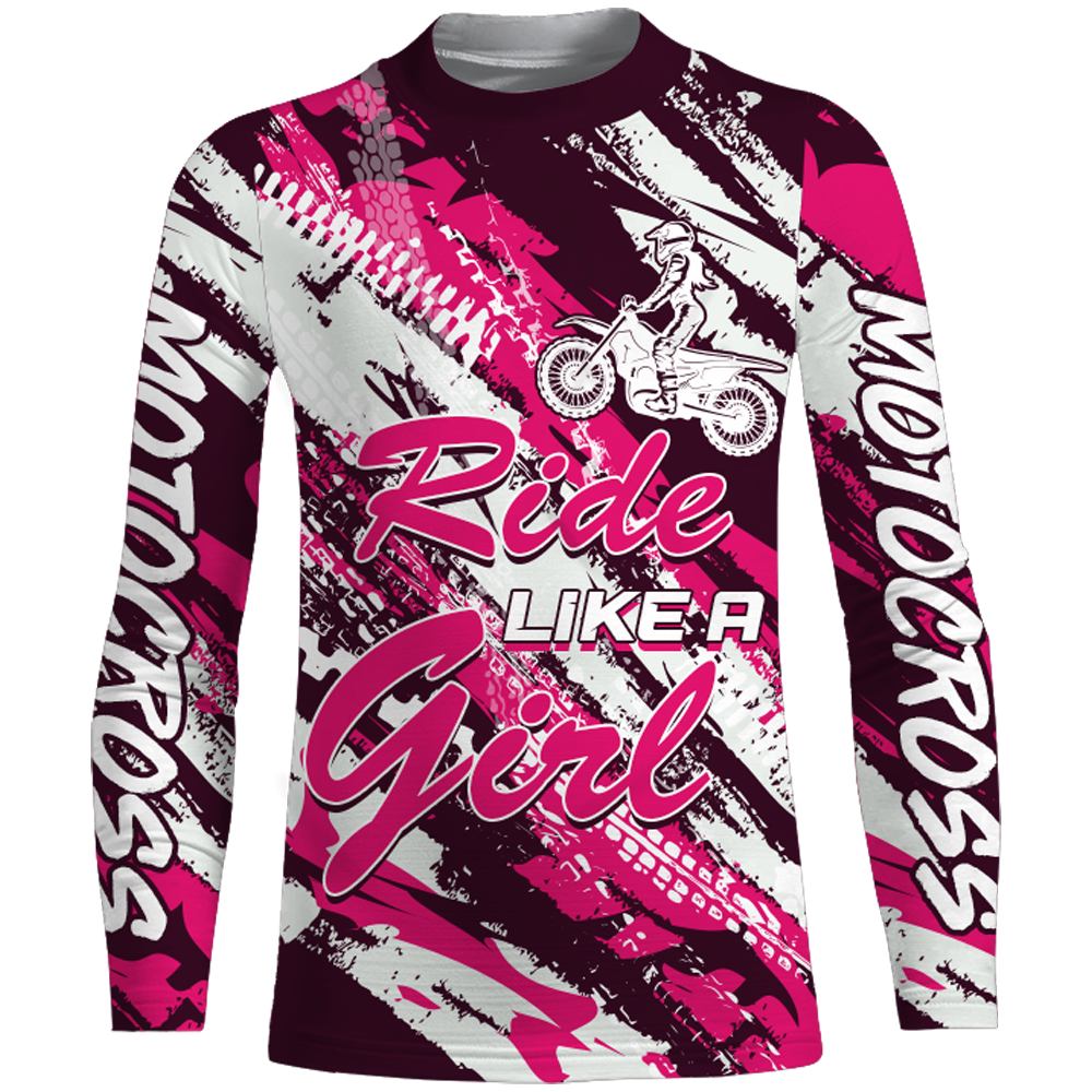Pink Motocross Jersey Youth Racing UPF30+ Dirt Bike Shirt Girl Women Off-Road Motorcycle XM157