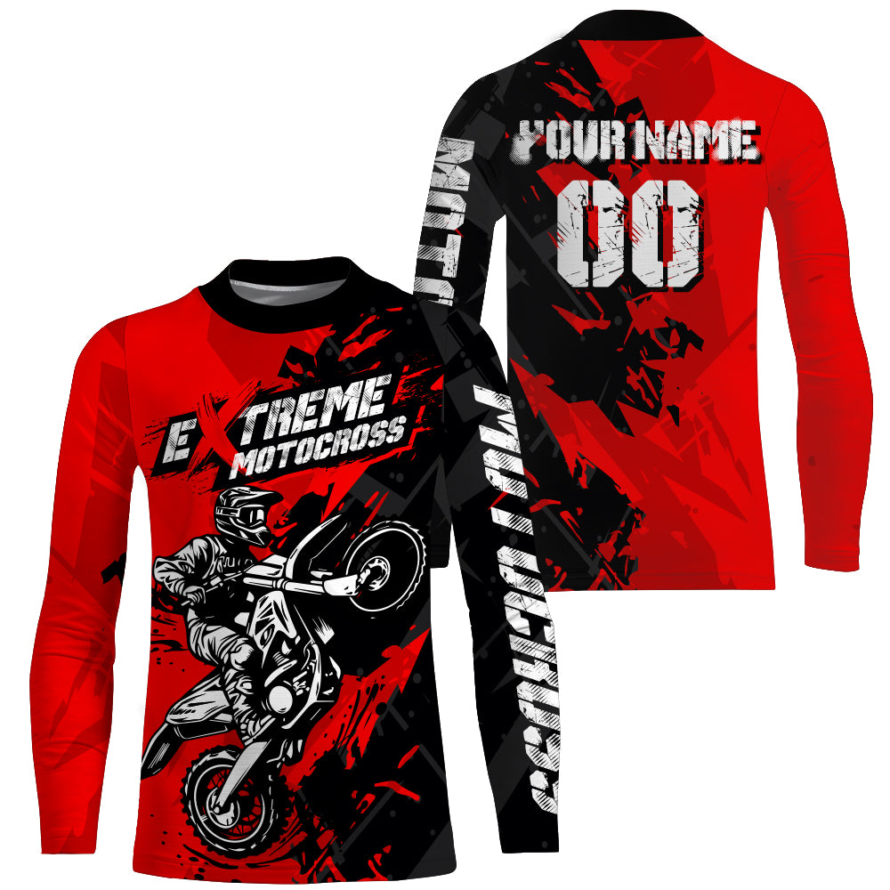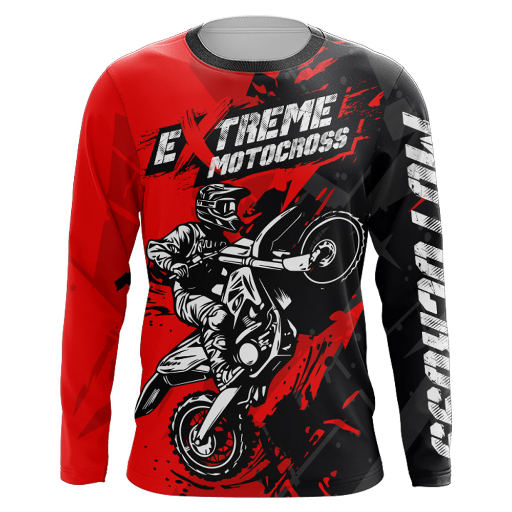 Red Motocross Racing Jersey UPF30+ Youth Mens Women Kids Dirt Bike Shirt Off-Road Motorcycle XM60