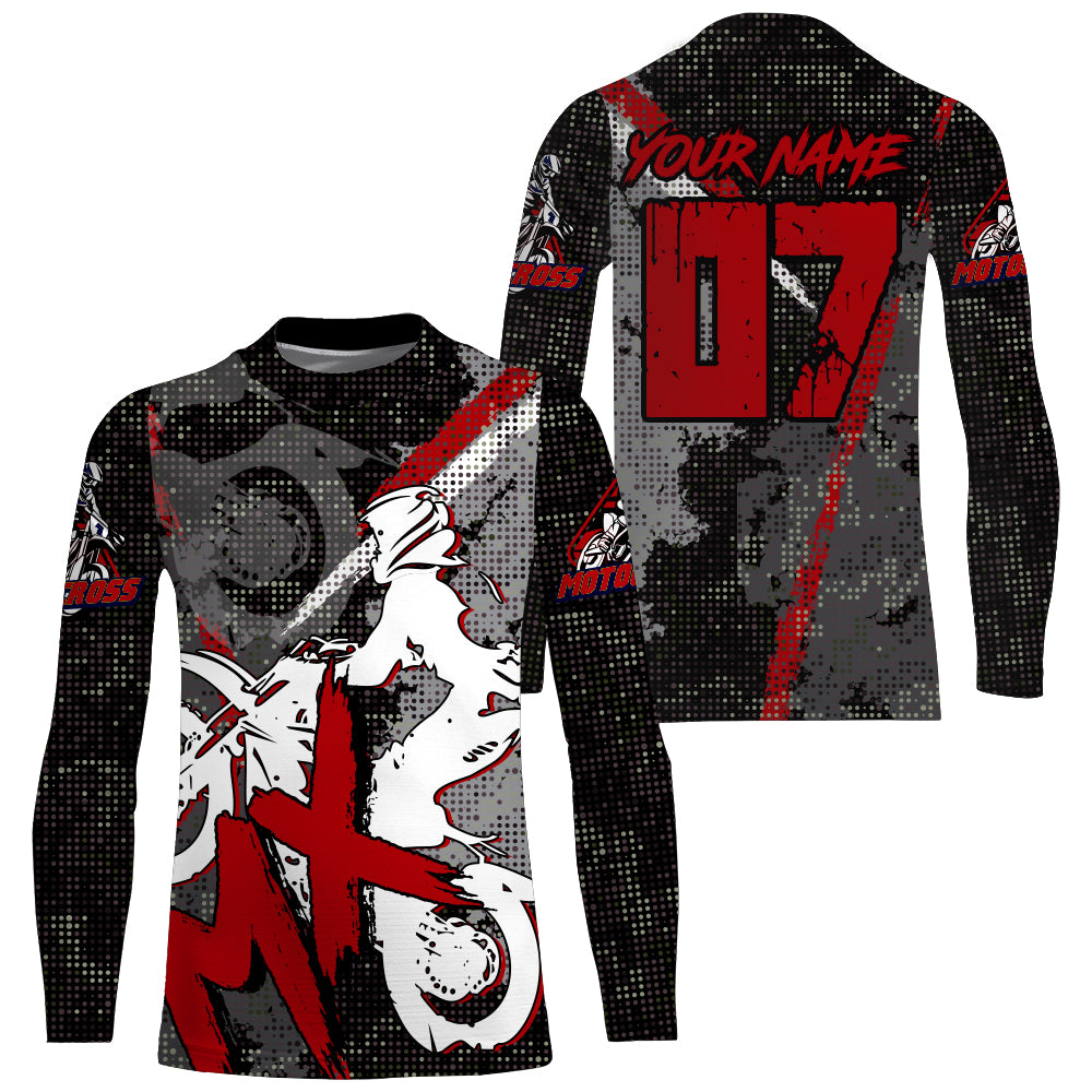 Red MX Jersey Custom UPF30+ Dirt Bike Shirt For Men Women Youth Long Sleeve Motocross Racing PDT464