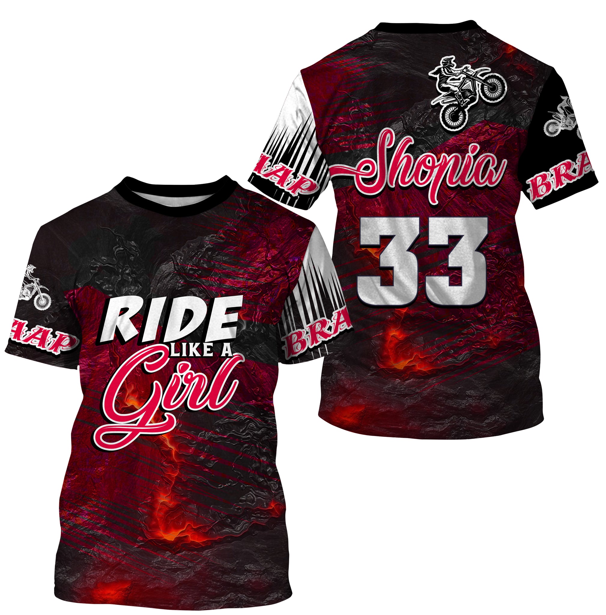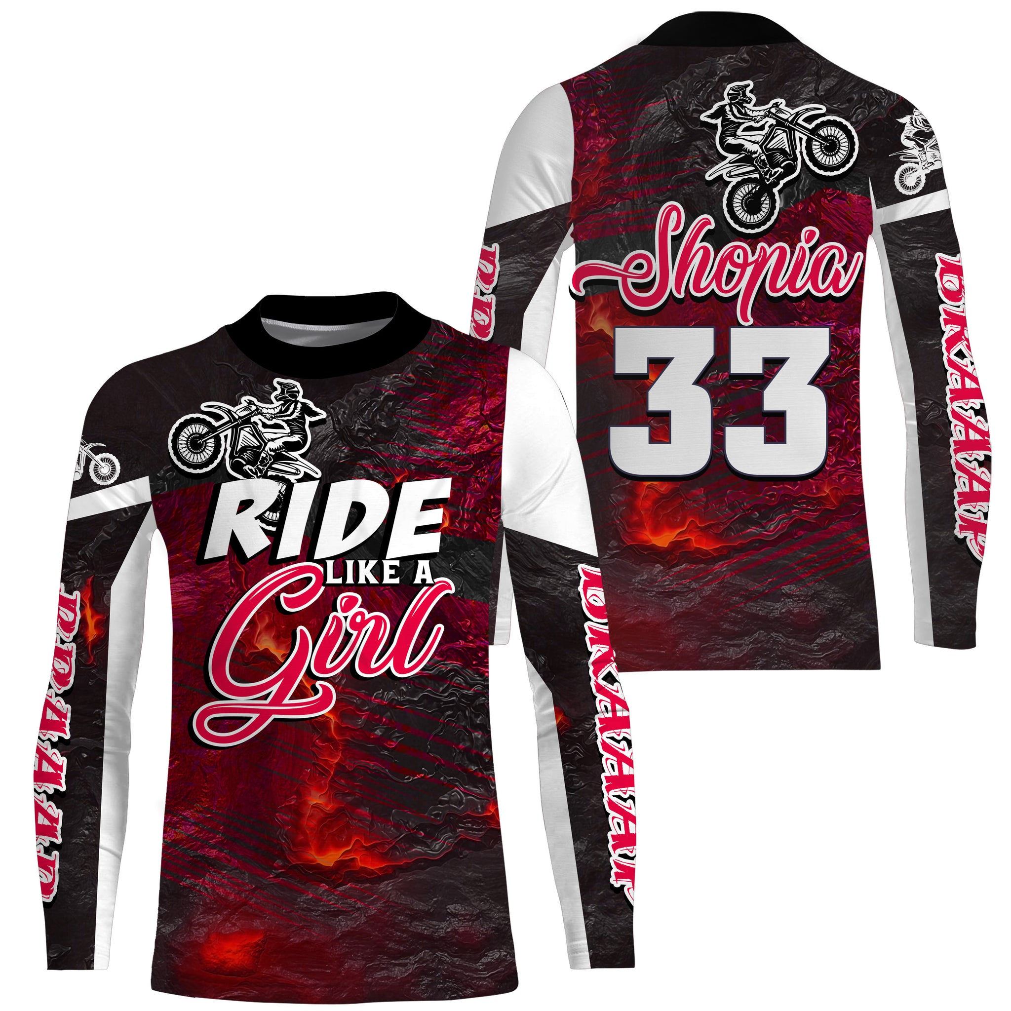 Ride Like A Girl Motocross Jersey Personalized UPF30+ Red Dirt Bike Riding Shirt Women Girls NMS741