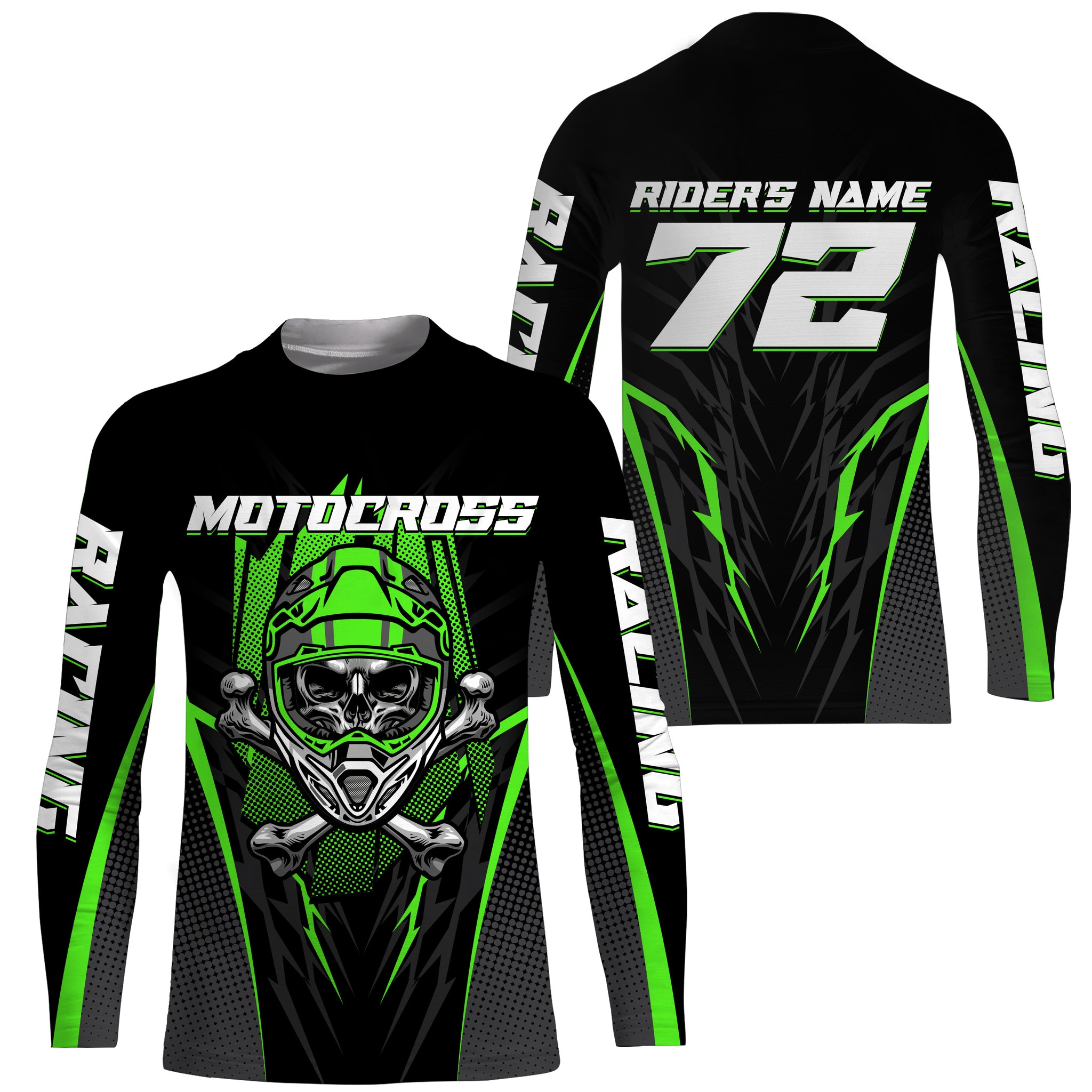 Skull MX Jersey Green Personalized UPF30+ Kid Women Men Dirt Bike Shirt Off-Road Jersey MX Racing PDT667