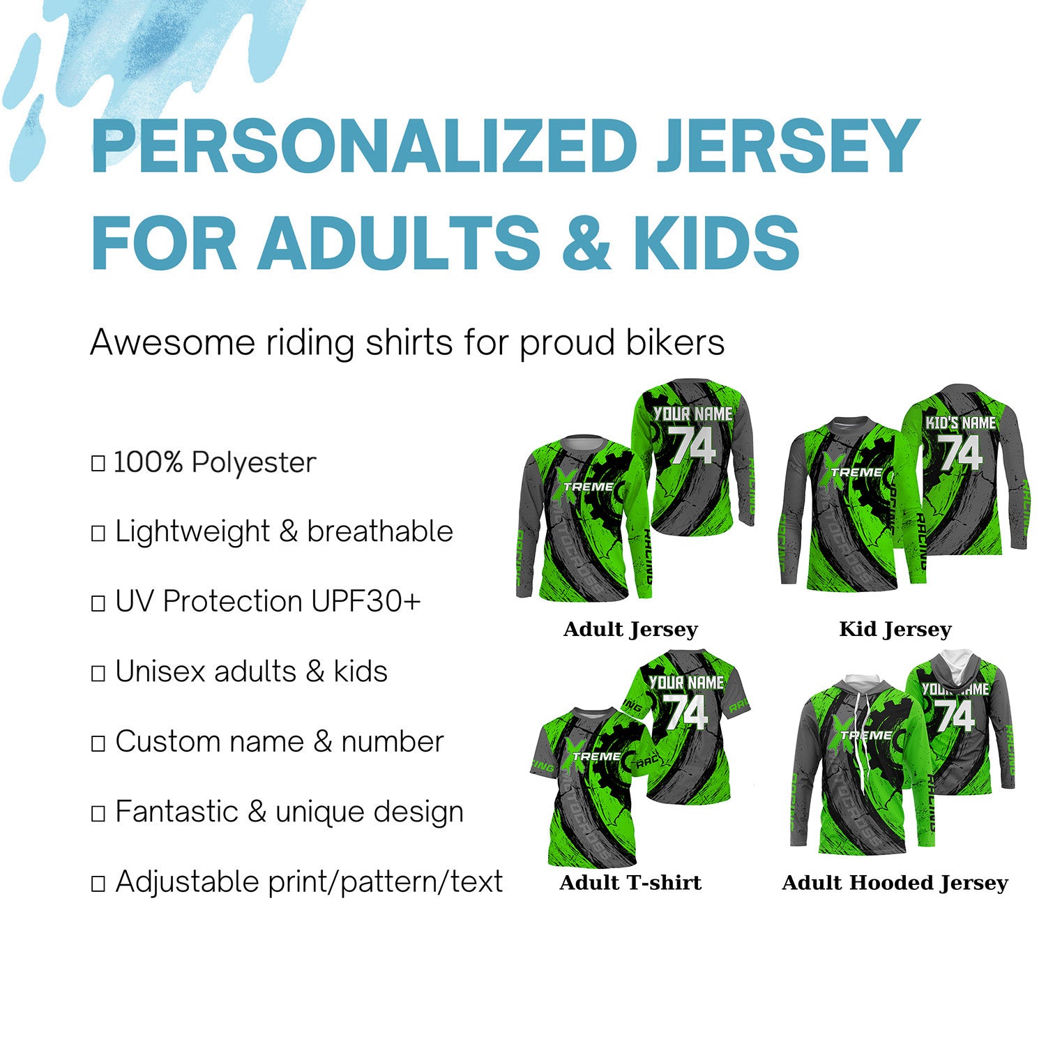 Xtreme dirt bike green Motocross racing jersey UPF30+ personalized adult kid MX shirt motorcycle PDT62