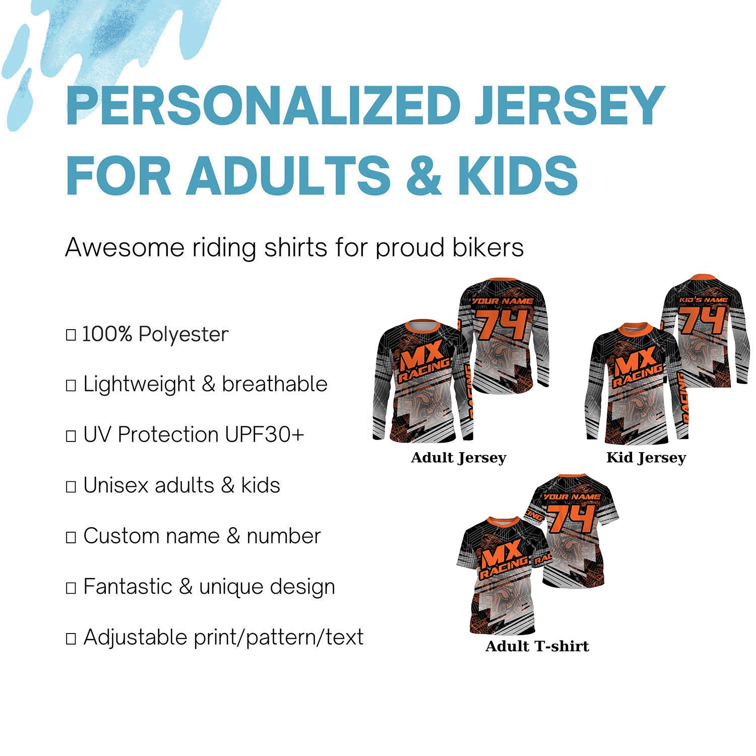 - PERSONALIZED RIDING JERSEY: This super cool shirt is exactly what all bikers are looking for. Add your name/number to make it a unique one that bears your own imprints.