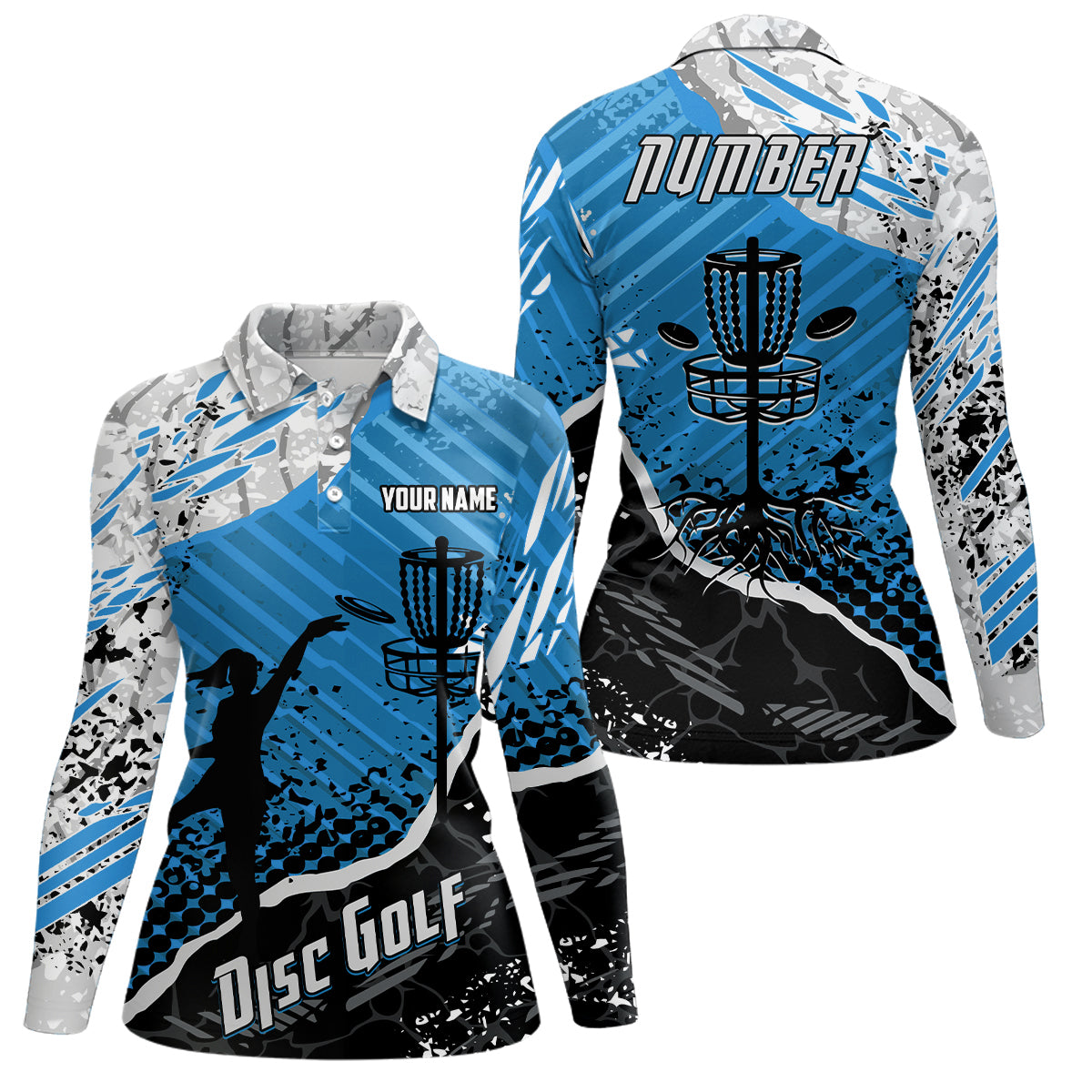 Disc Golf Abstract Grunge Womens Disc Golf Polo Shirt Custom Name And Number Disc Golf Gifts For Woman YYD0036