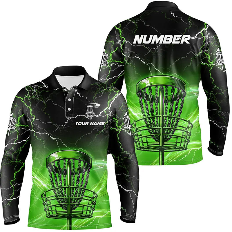 Green light lightning thunder Disc golf basket Men polo shirts custom disc golf tops for mens NQS7414