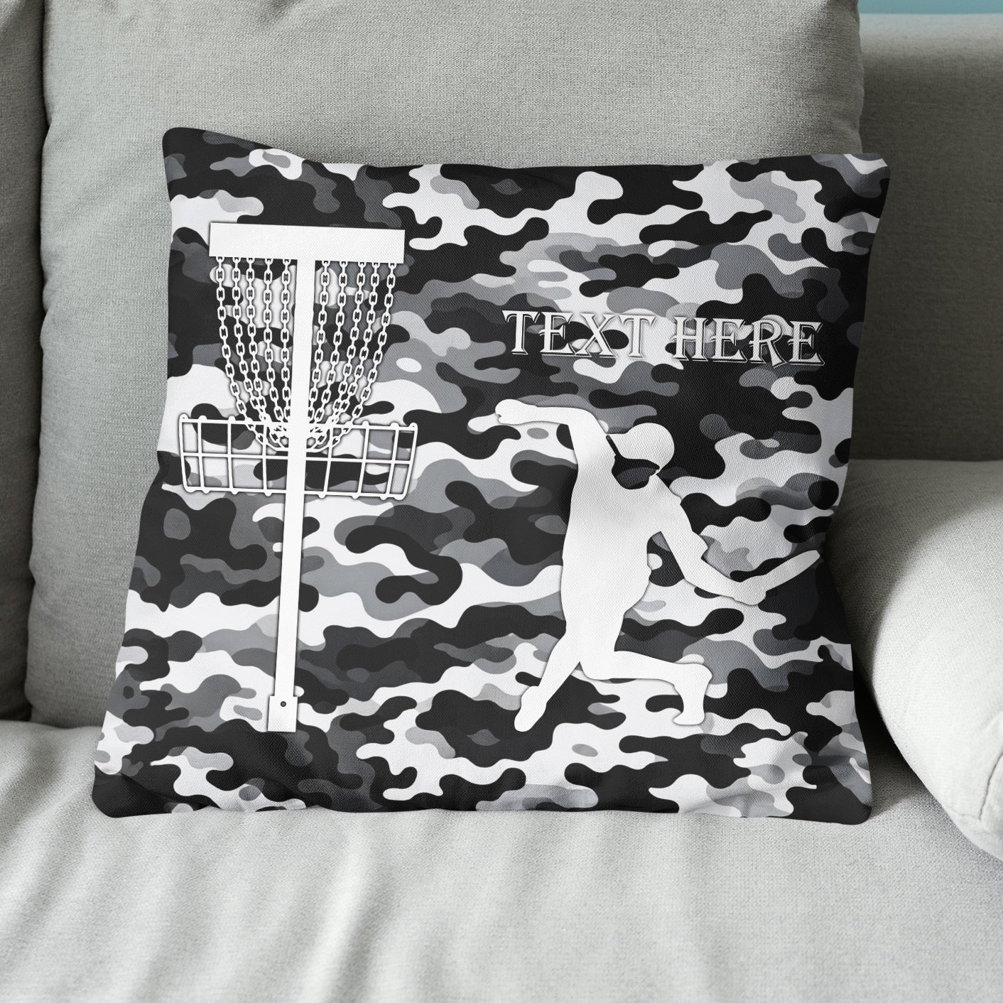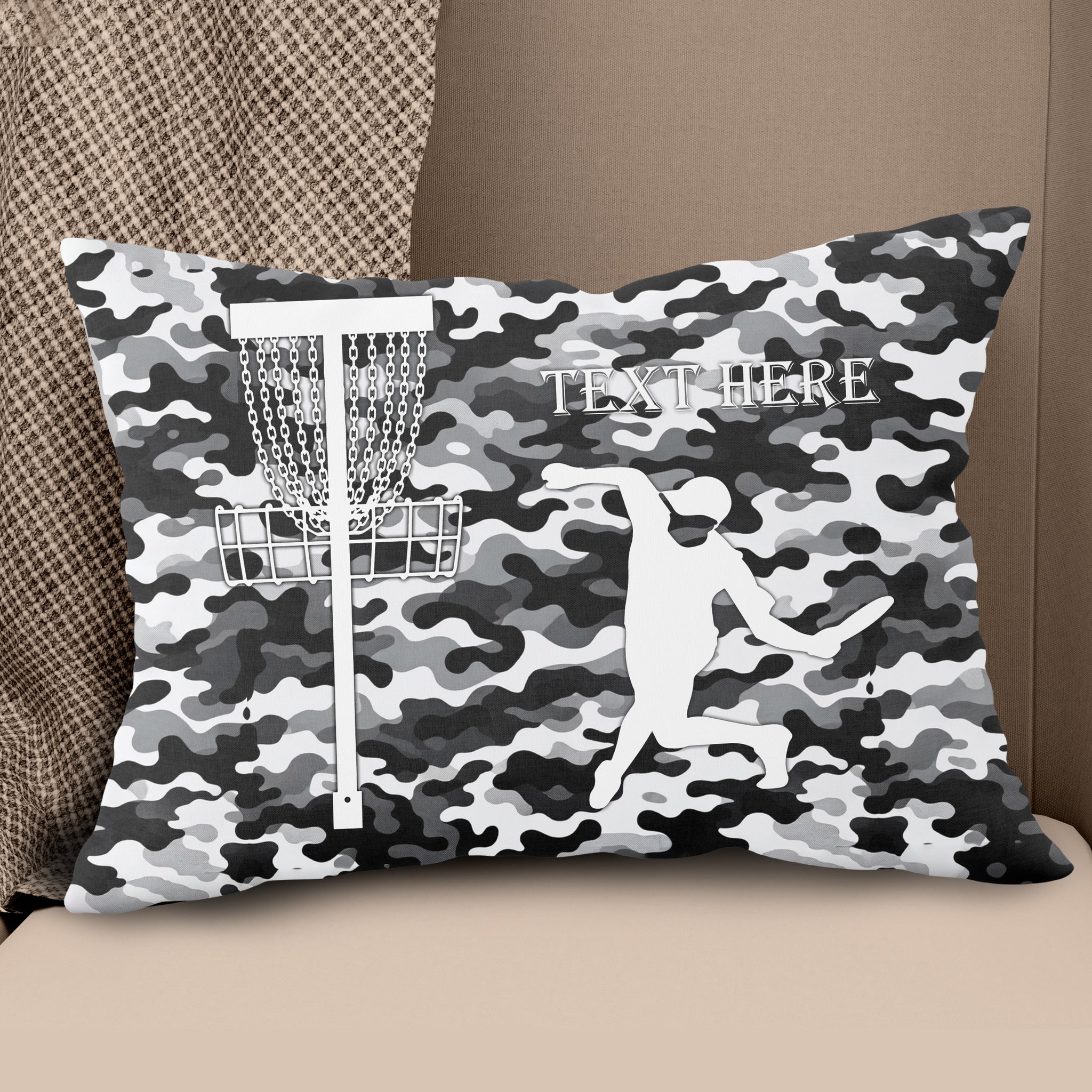 Personalized disc golf basket black gray camouflage pattern custom name Canvas, Linen Throw Pillow NQS7026