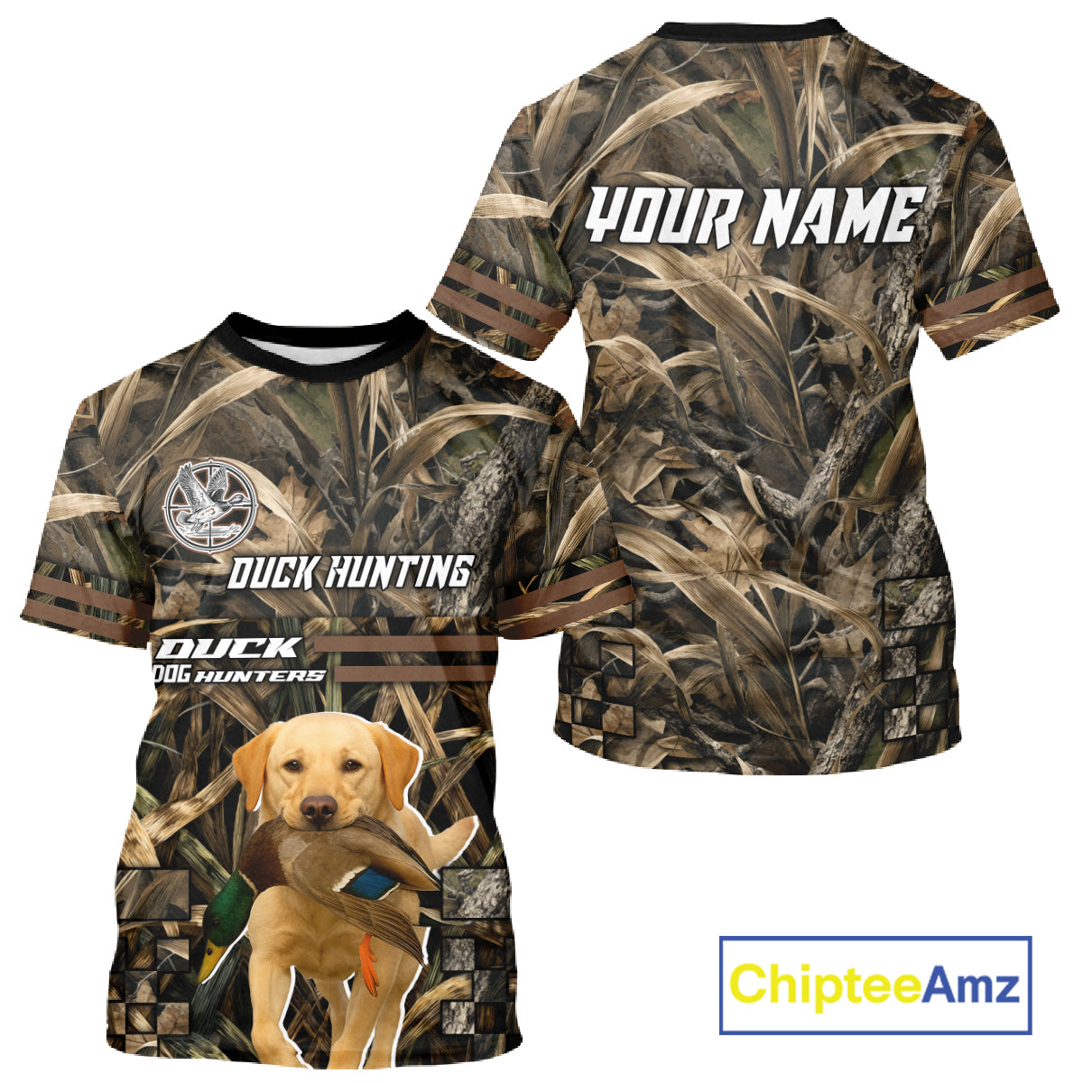 Yellow Lab 3D Shirt Retrieving Mallard Duck, Custom Name Duck Hunting Clothes NHT217