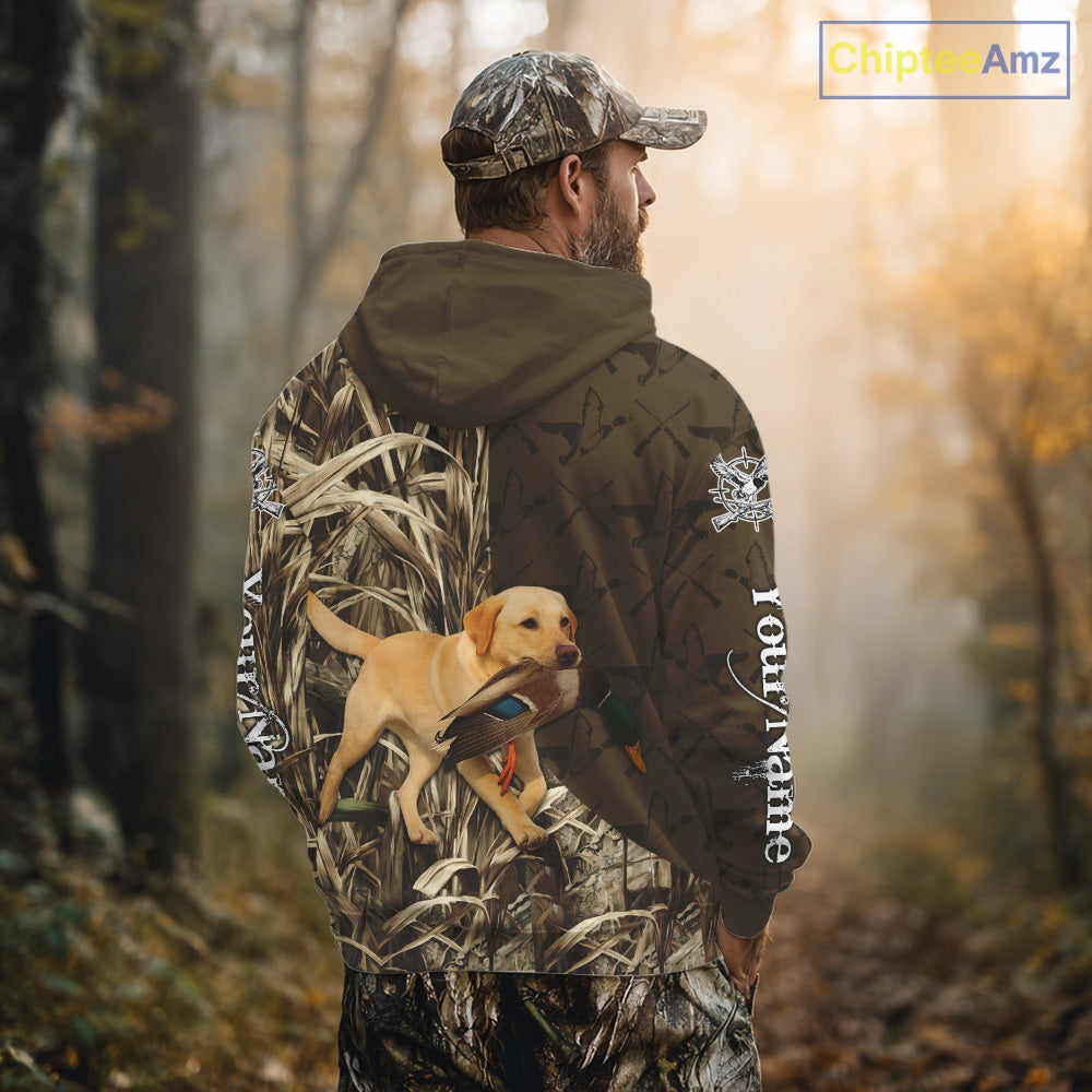 Yellow Lab Hunting Dog Customized Name All Over Print Shirts For Hunters NHT293