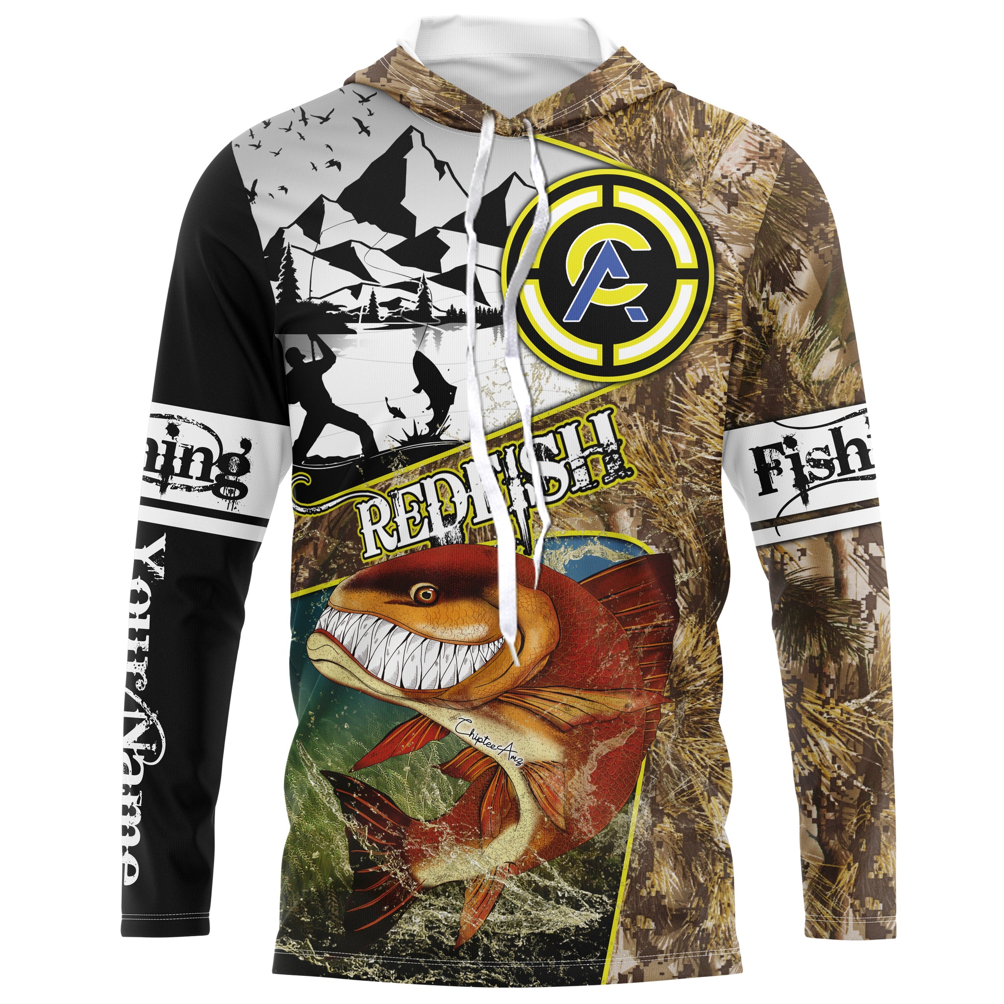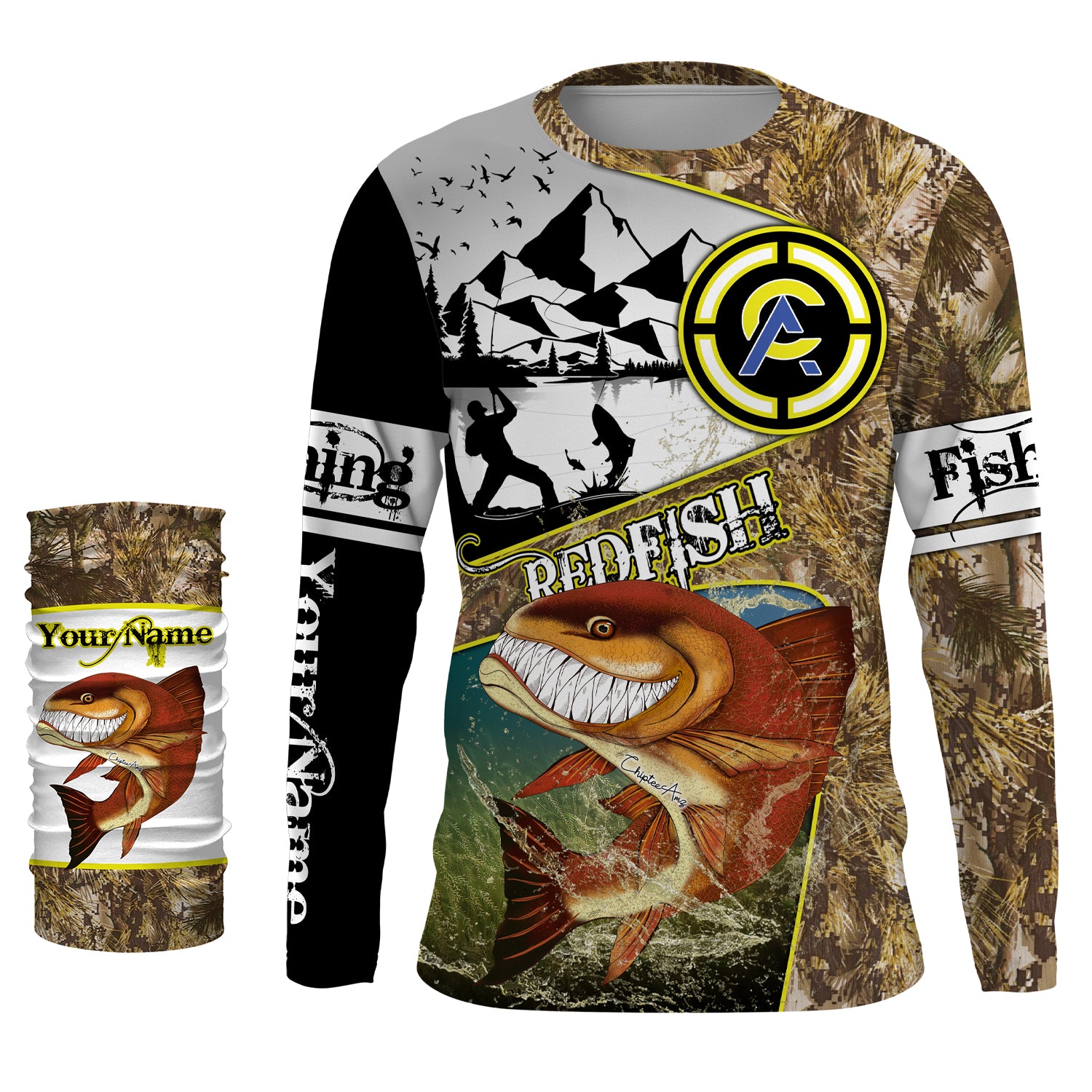 Redfish fishing camo custom name with funny Redfish angry ChipteeAmz's art UV protection shirts AT018