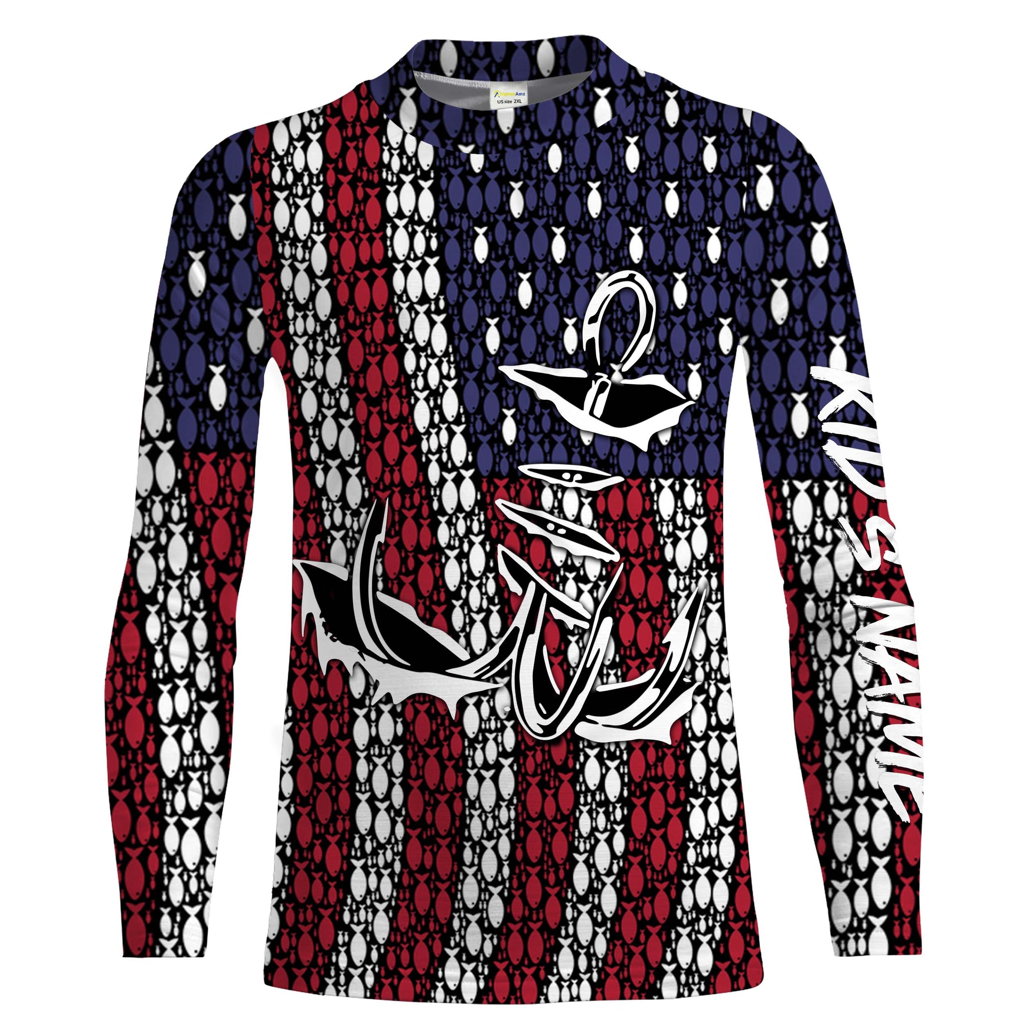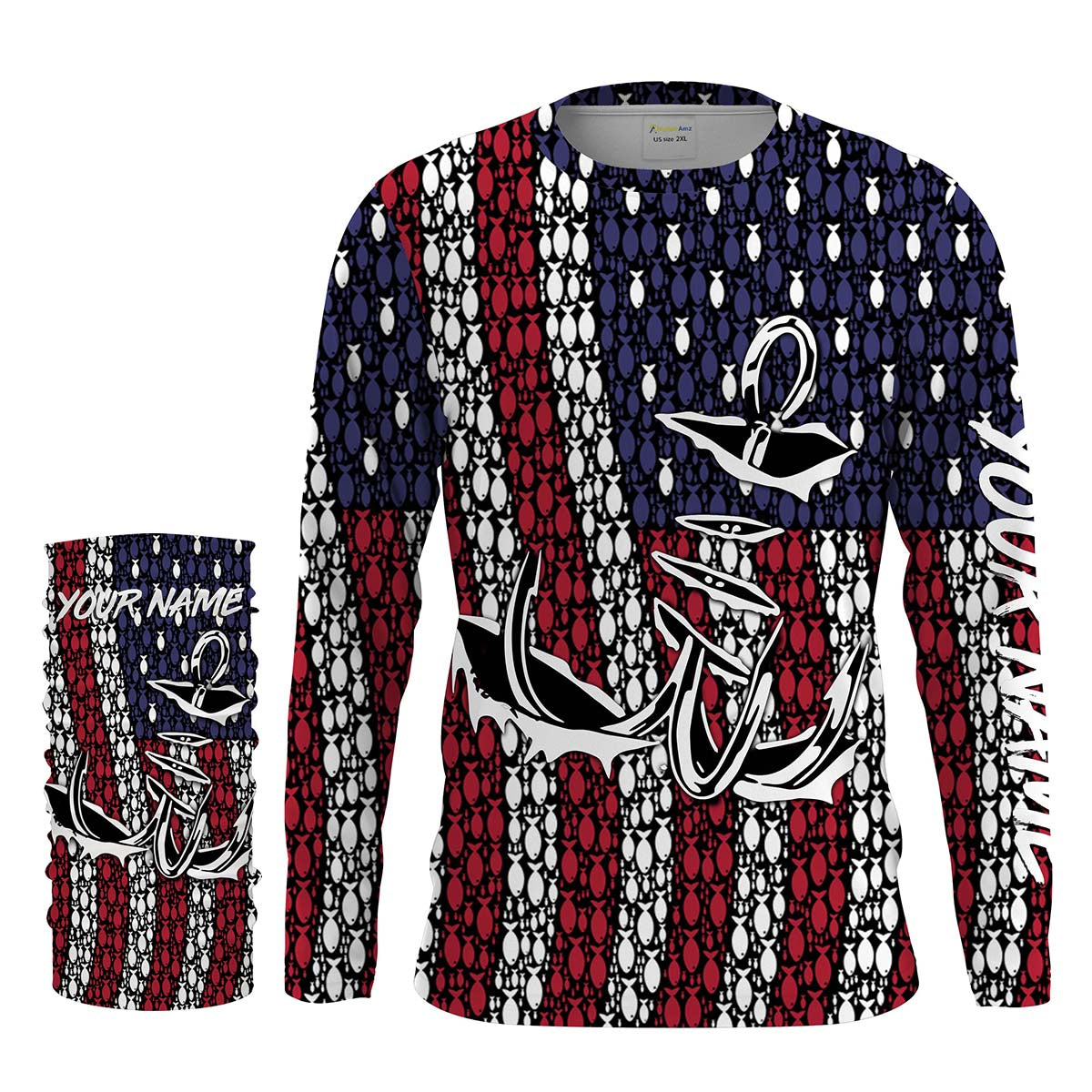 American Flag 3D Fish Hook Treble Hook Custom Name All Over Printed UV Protection Shirts Fishing Apparel Patriotic Gift FSD2015