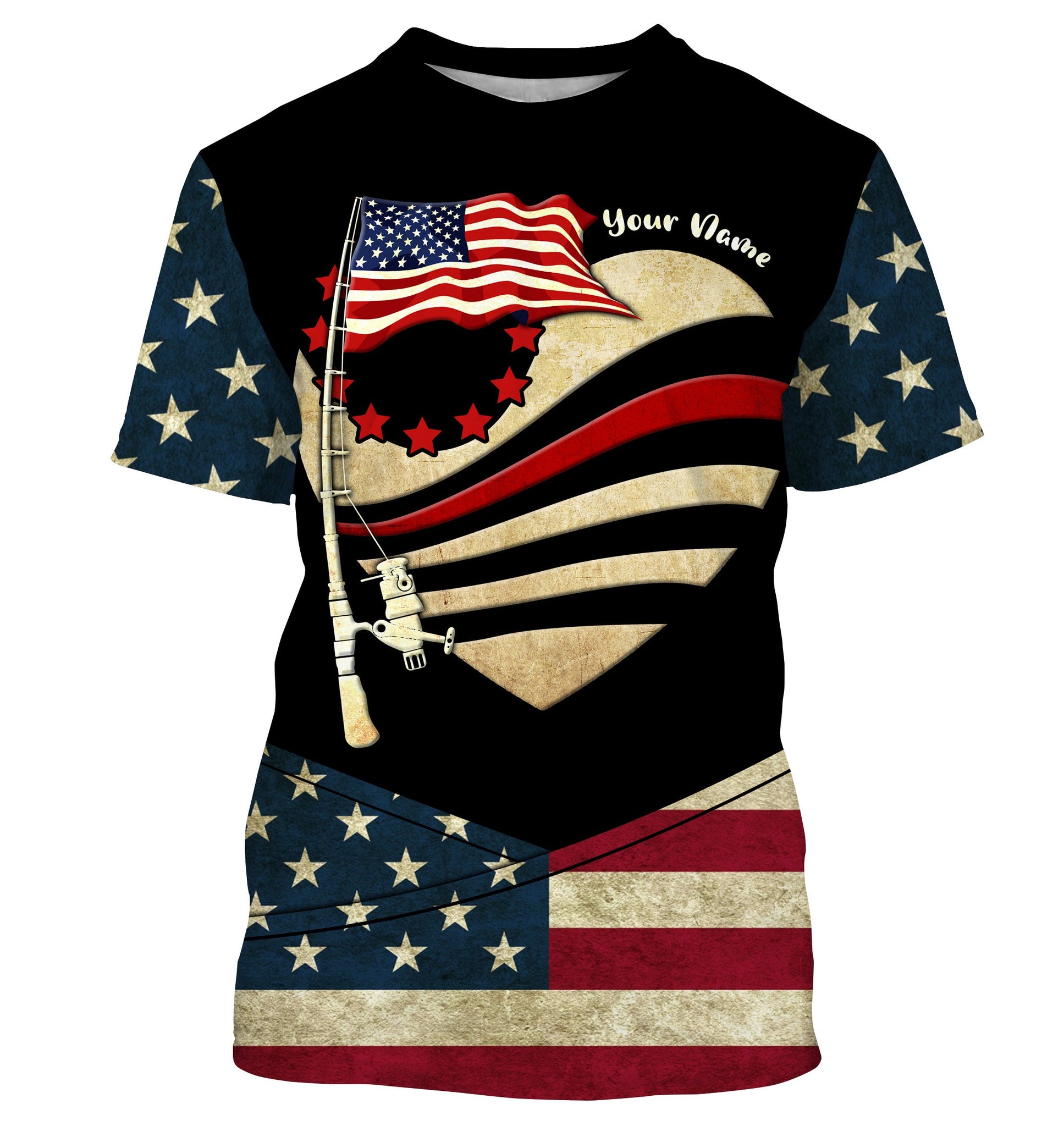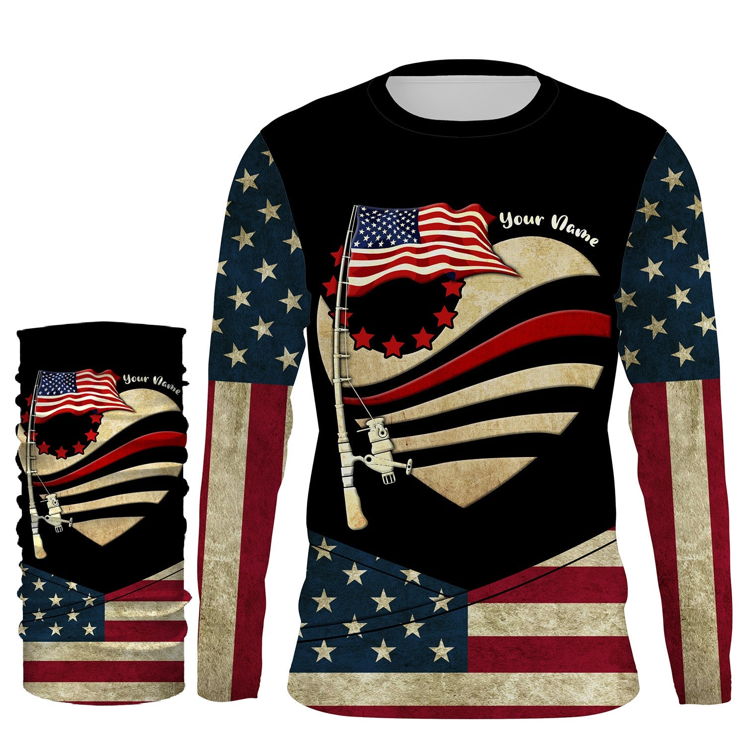 American Flag fishing rod Custom Name US flag long sleeves, hooded fishing shirt, Personalized Gifts for Fisherman NQS2930