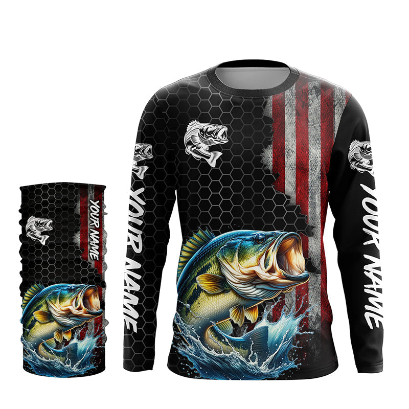 American flag Largemouth bass fishing Custom patriot performance Fishing Shirts, Bass fishing jerseys NQS7559