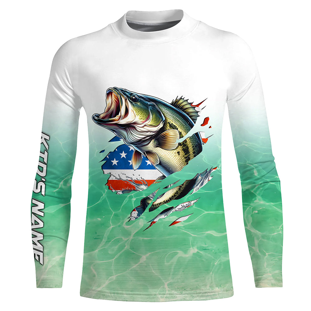 Bass Fishing American Flag Custom long sleeve performance Fishing Shirts, patriotic fishing gifts TTN65