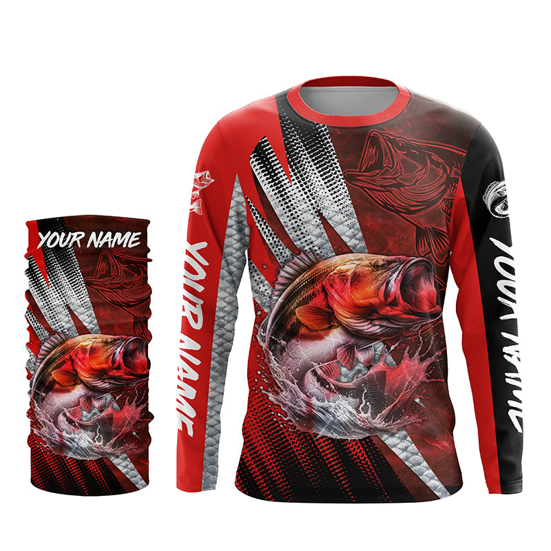 Bass fishing Custom sun protection long sleeve fishing shirts, bass fishing jersey | Red NQS5366