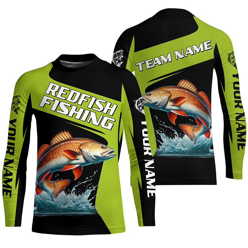 Black Green Redfish fishing Custom Long Sleeve Tournament Fishing Shirts, Red Drum Fishing Jerseys NQS7657