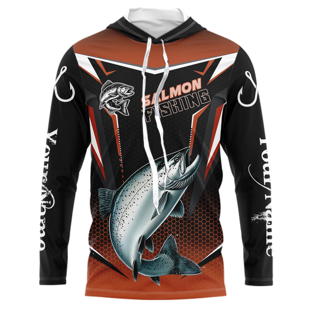 Black & Orange Chinook Salmon Long Sleeve Fishing Shirt, Personalized Salmon Fishing Tounament Jersey NQS9773