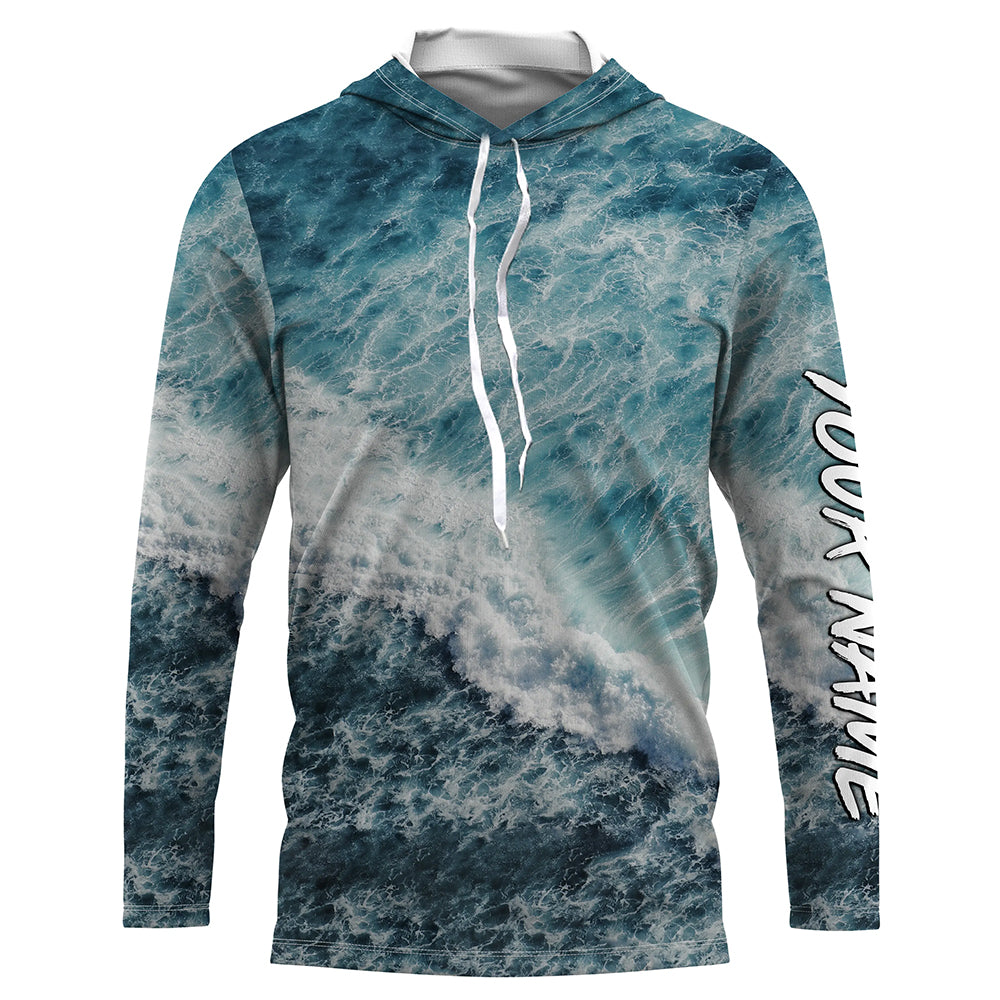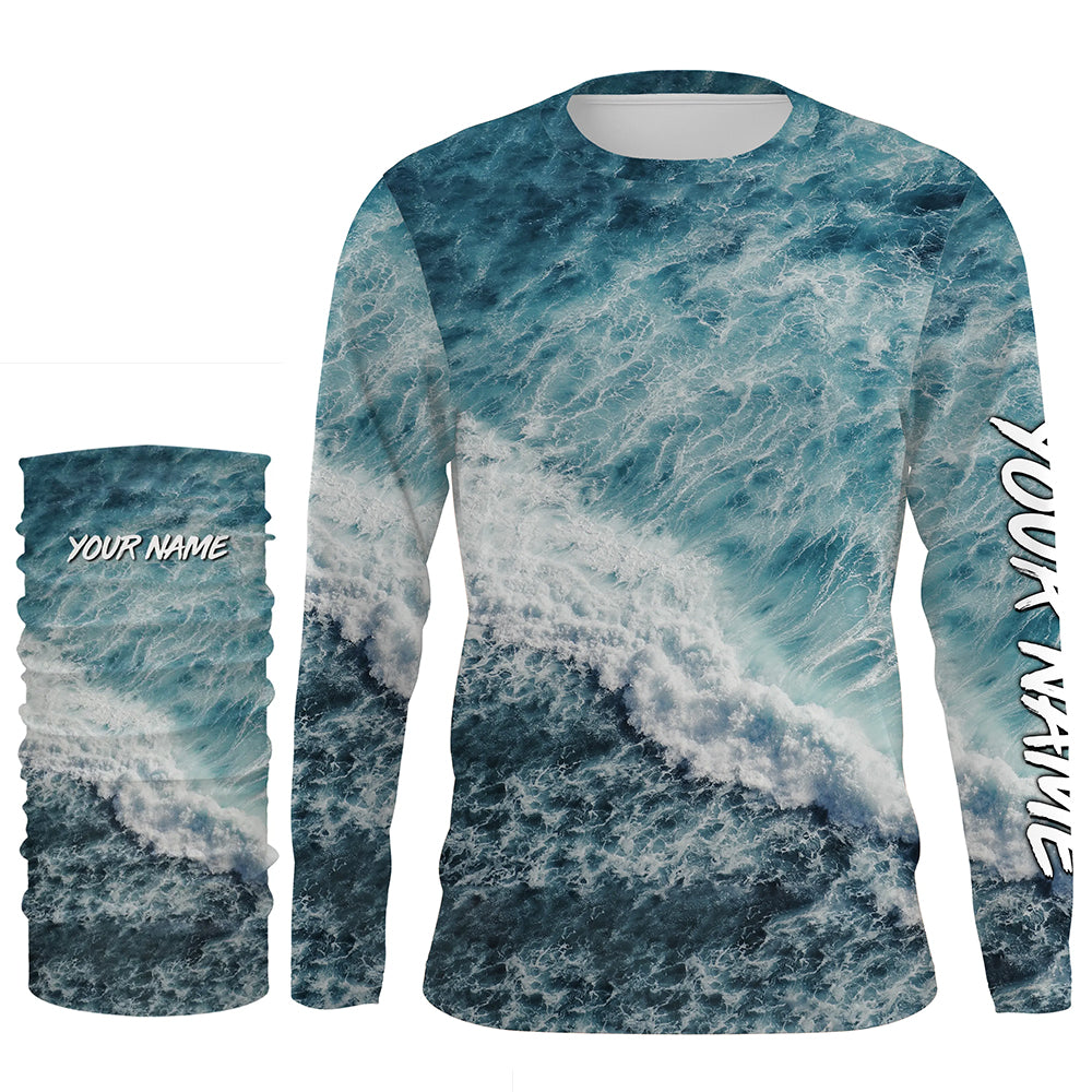 Custom Saltwater Fishing UV Protection Long sleeves, Sea Wave Camo Fishing Shirts TTN129