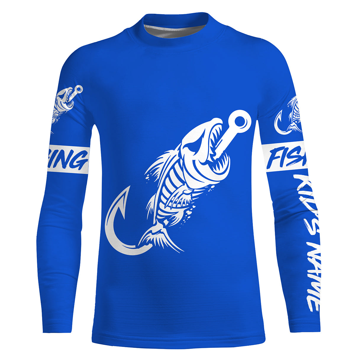 Customized Blue Fish hook skull reaper sun protection performance long sleeve fishing shirts NQS3520