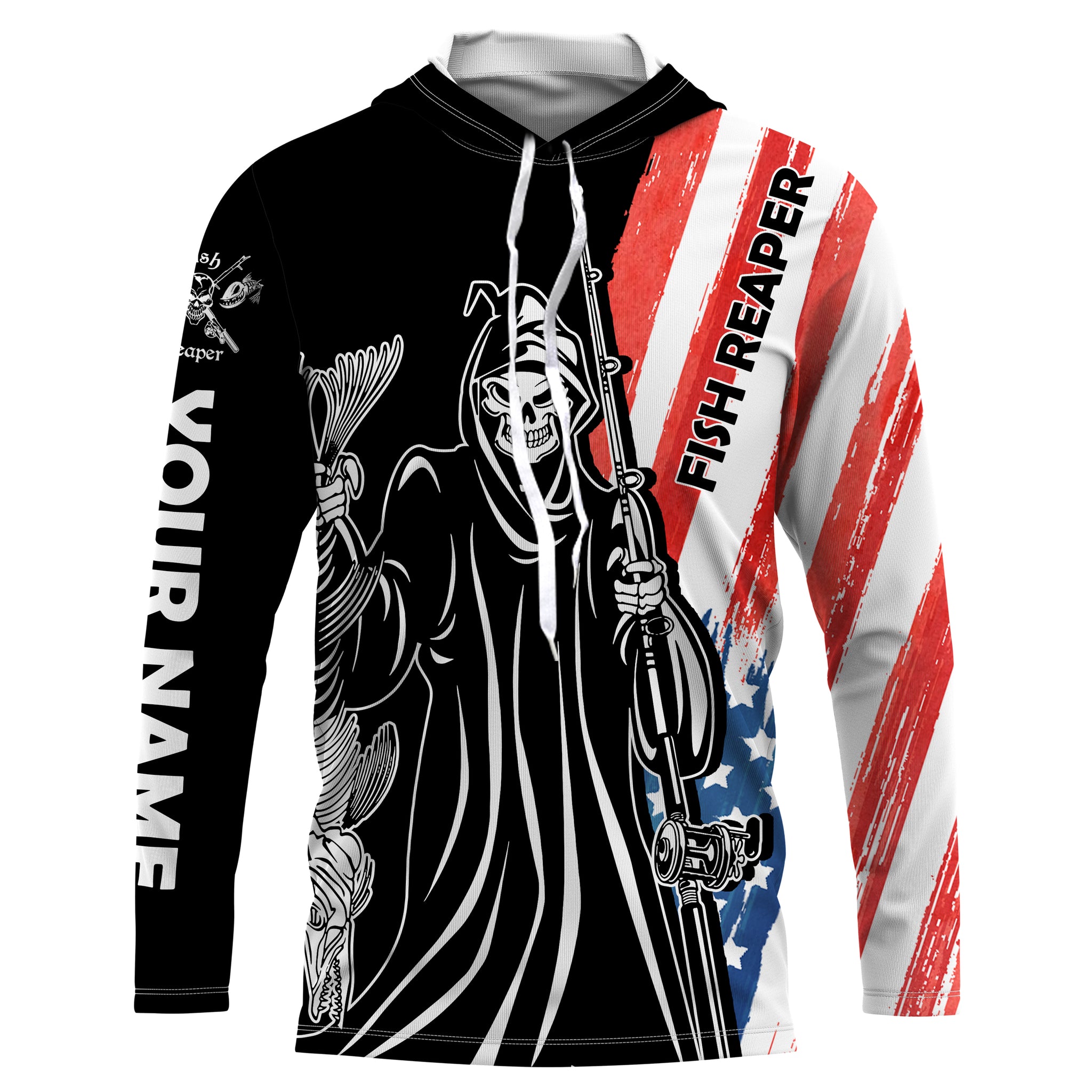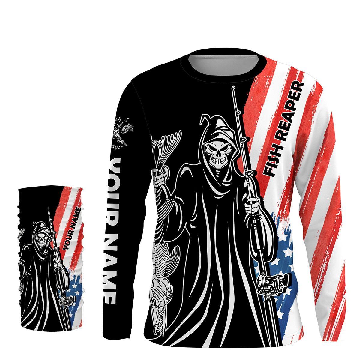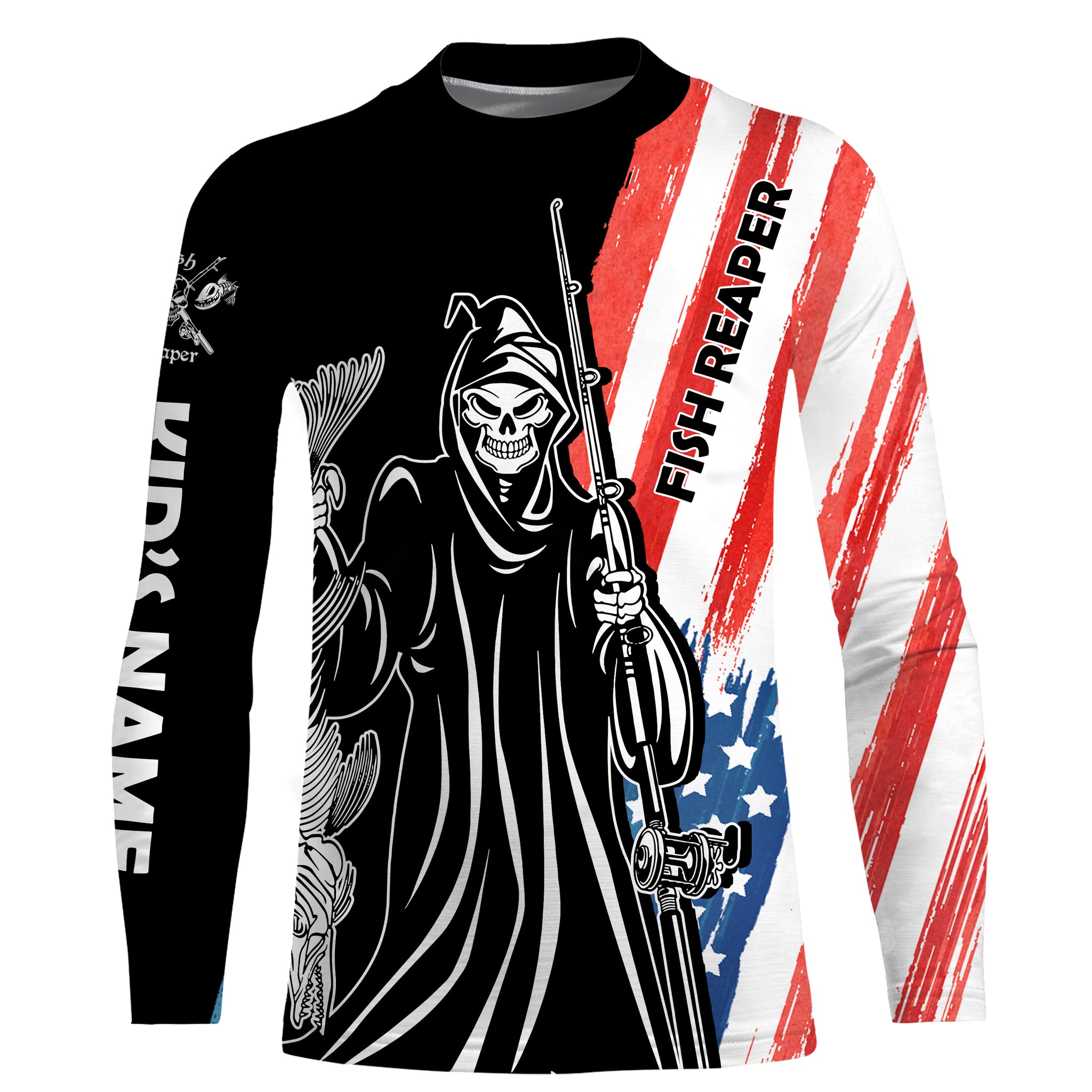 Fish Reaper American Flag Patriotic Custom Name UV Protection Shirt, Personalized Fishing Gifts - FSD2464