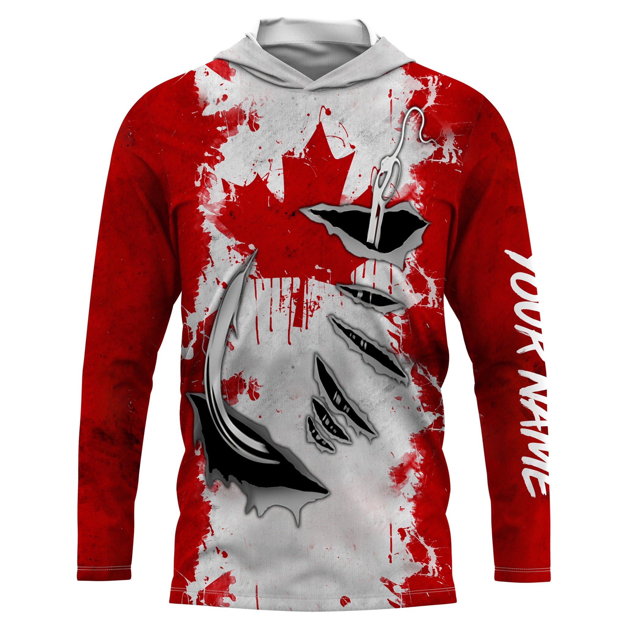 Personalized Canada flag Fish hook long sleeve performance Fishing Shirts, Canada fishing jerseys IPHW2851