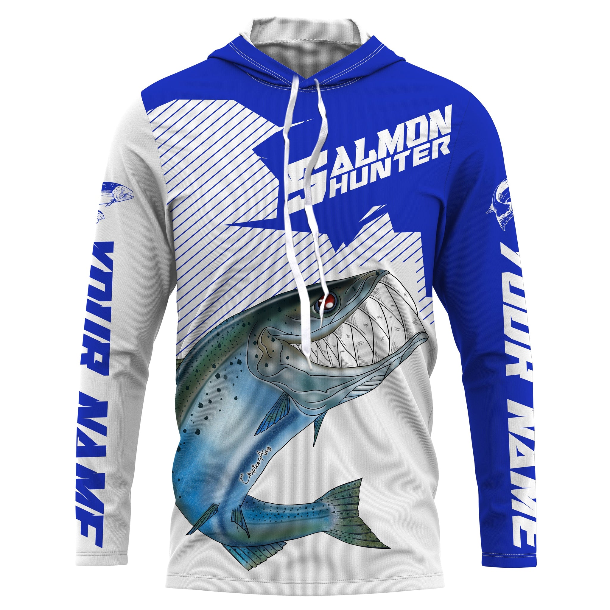 Angry Chinook King Salmon Custom Long sleeve Fishing Shirts, Salmon hunter Fishing jerseys | blue IPHW3352