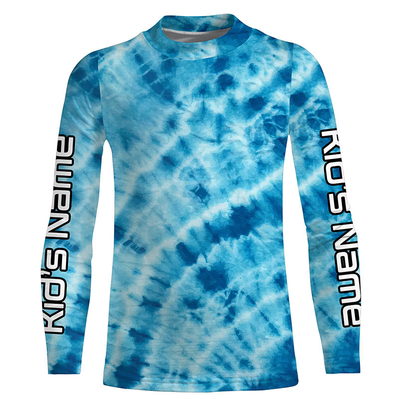 Personalized blue tie dye Long sleeve performance Fishing Shirts, Fishing gifts for Fisherman IPHW3581