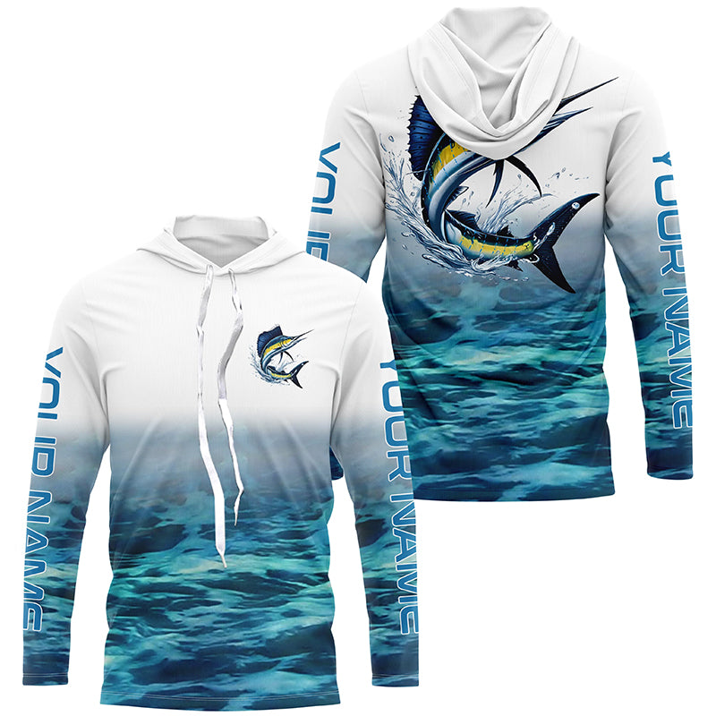 Blue Ocean Background Custom Sailfish Fishing Long Sleeve Shirts, Sailfish Saltwater Fishing Shirt IPHW7025