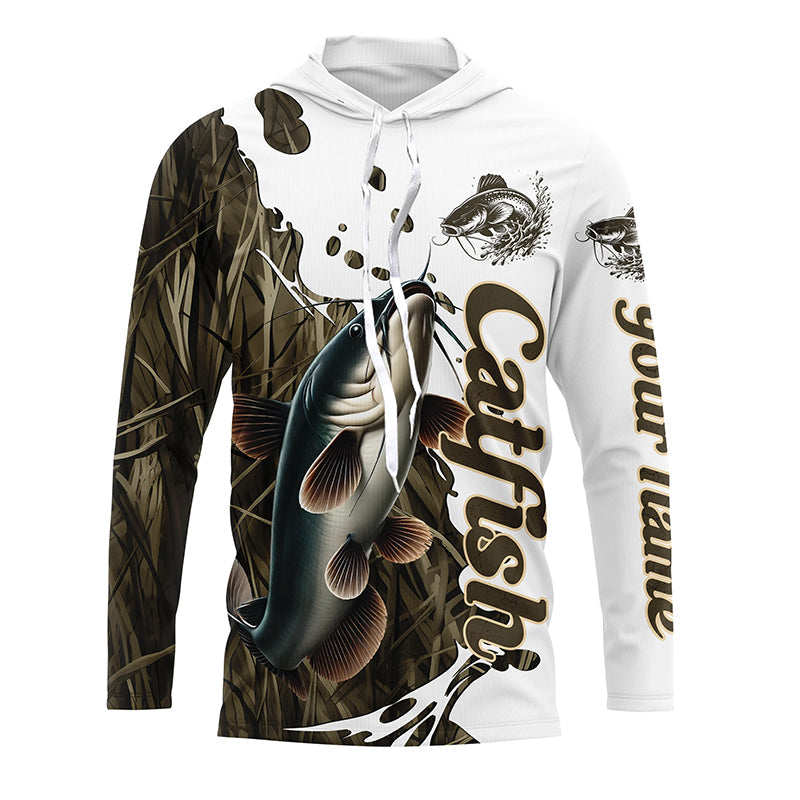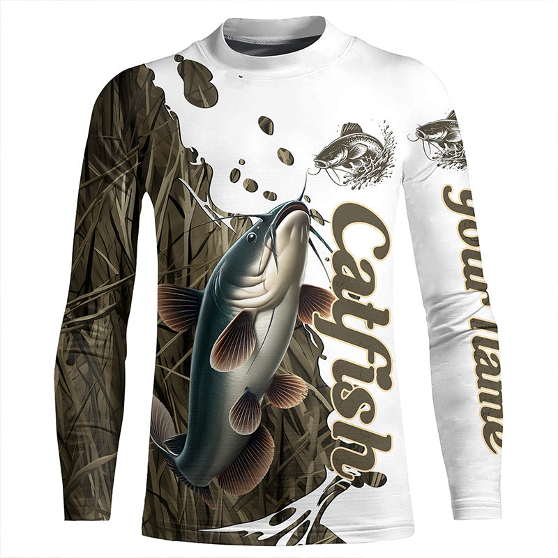 Grass Lake Camo Custom Catfish Fishing Long Sleeve Shirts, Catfish Tournament Fishing Shirt IPHW7028