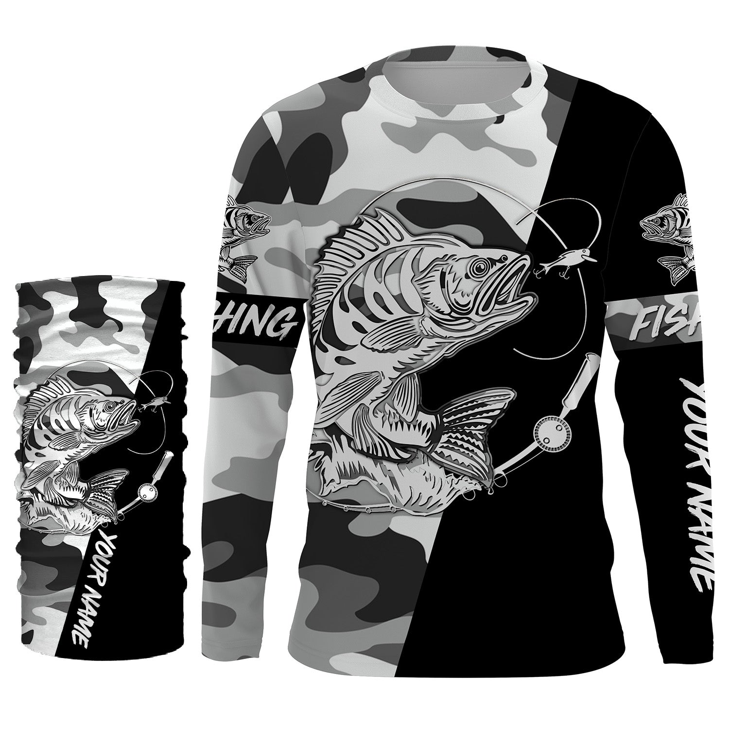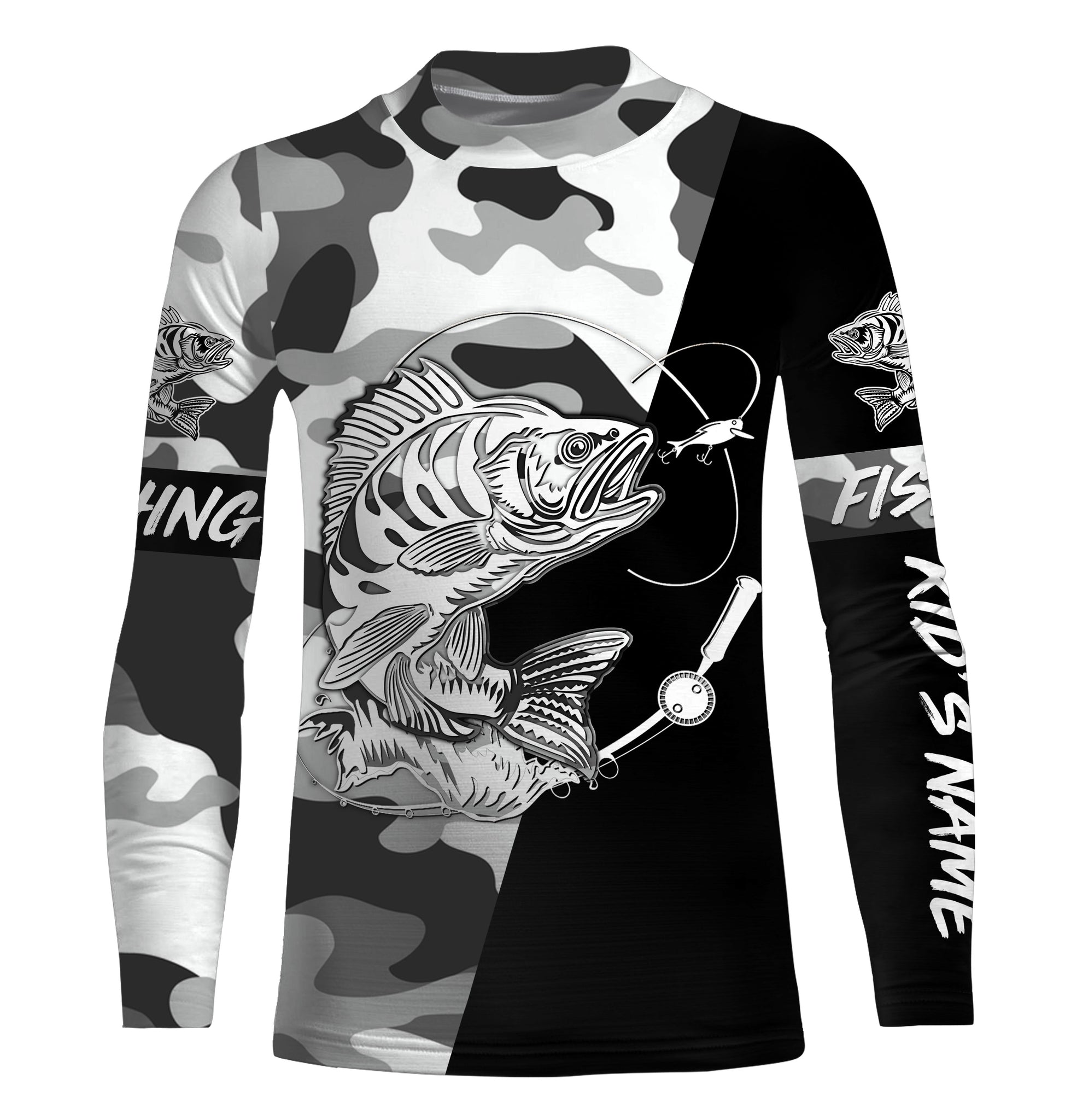 Perch Ice fishing winter camo custom name sun protection long sleeve fishing shirts, Perch jerseys NQS4093