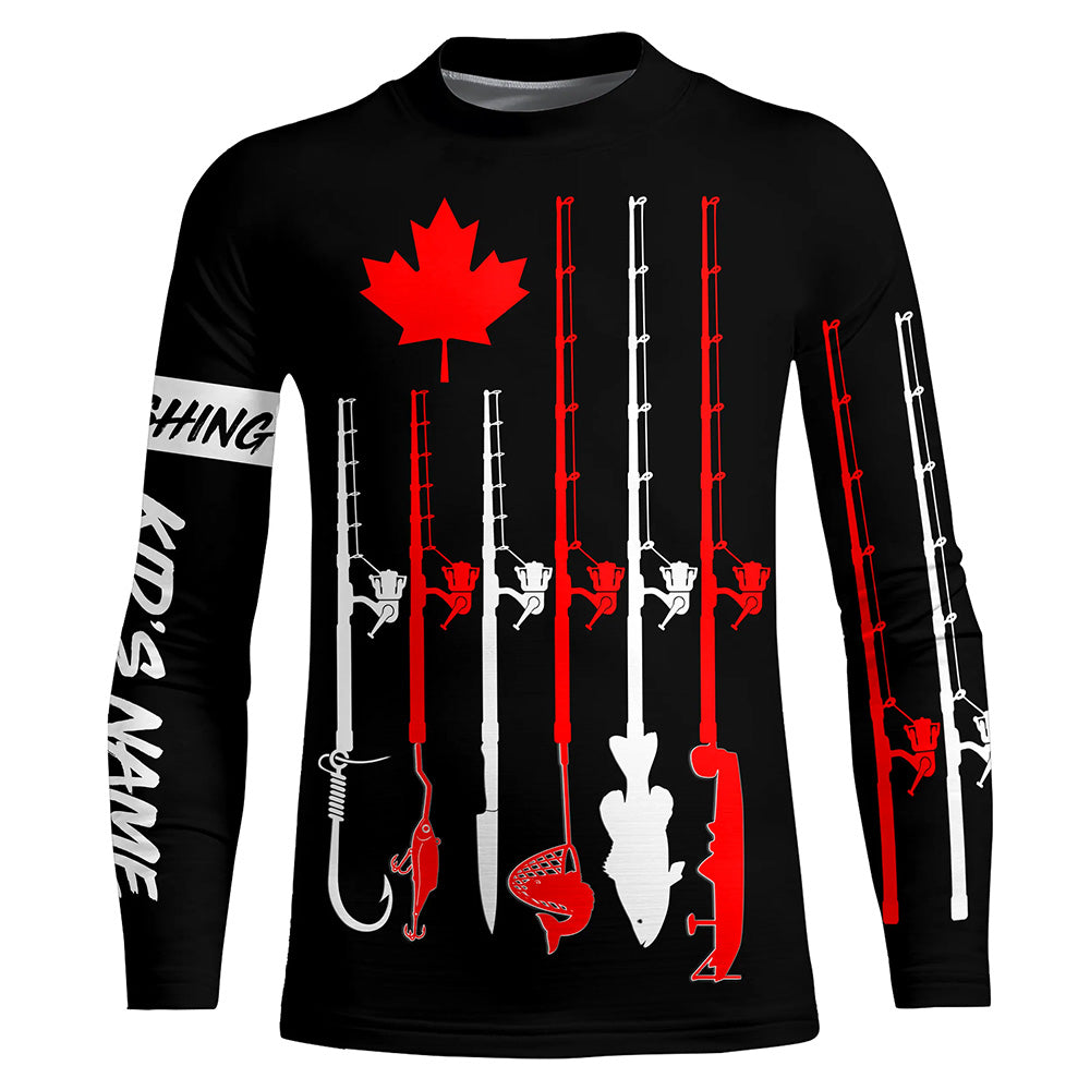 Personalized Canadian flag fishing rod UV protection patriotic fishing jerseys for fisherman | Black NQS5764