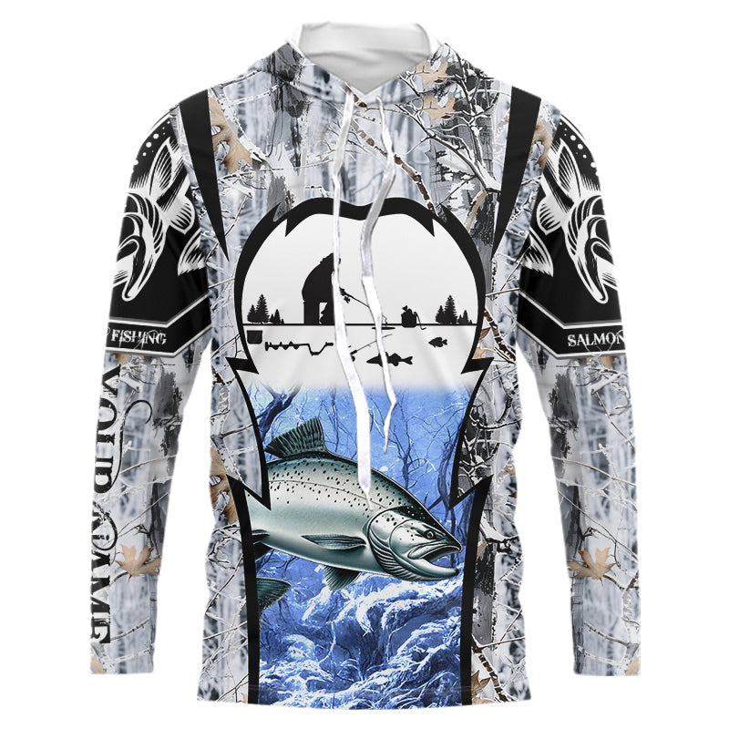 Salmon ice fishing Winter camo custom unisex Long sleeve fishing shirts, Ice fishing Salmon jerseys NQS9191