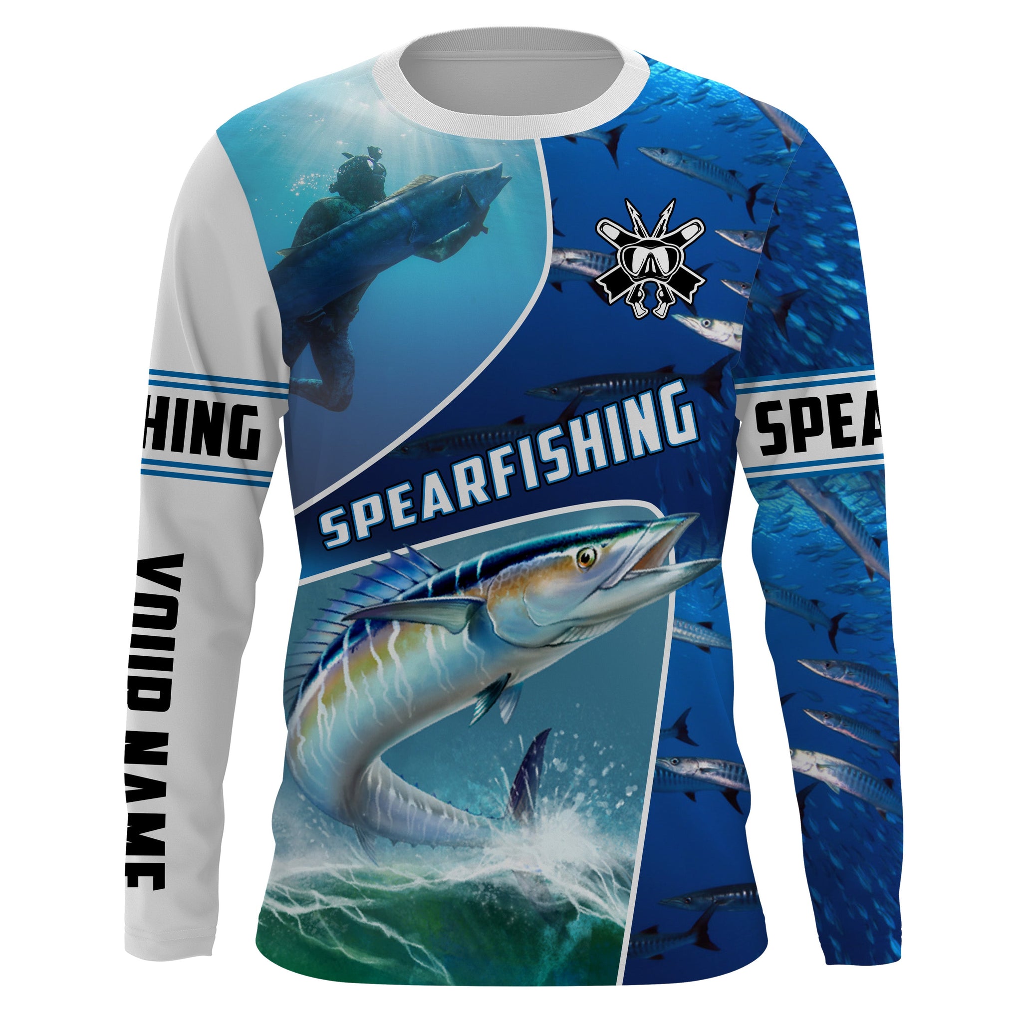 Wahoo blue water spearfishing Custom Name UV protection UPF 30+ fishing jersey, custom fishing apparel NQS3069