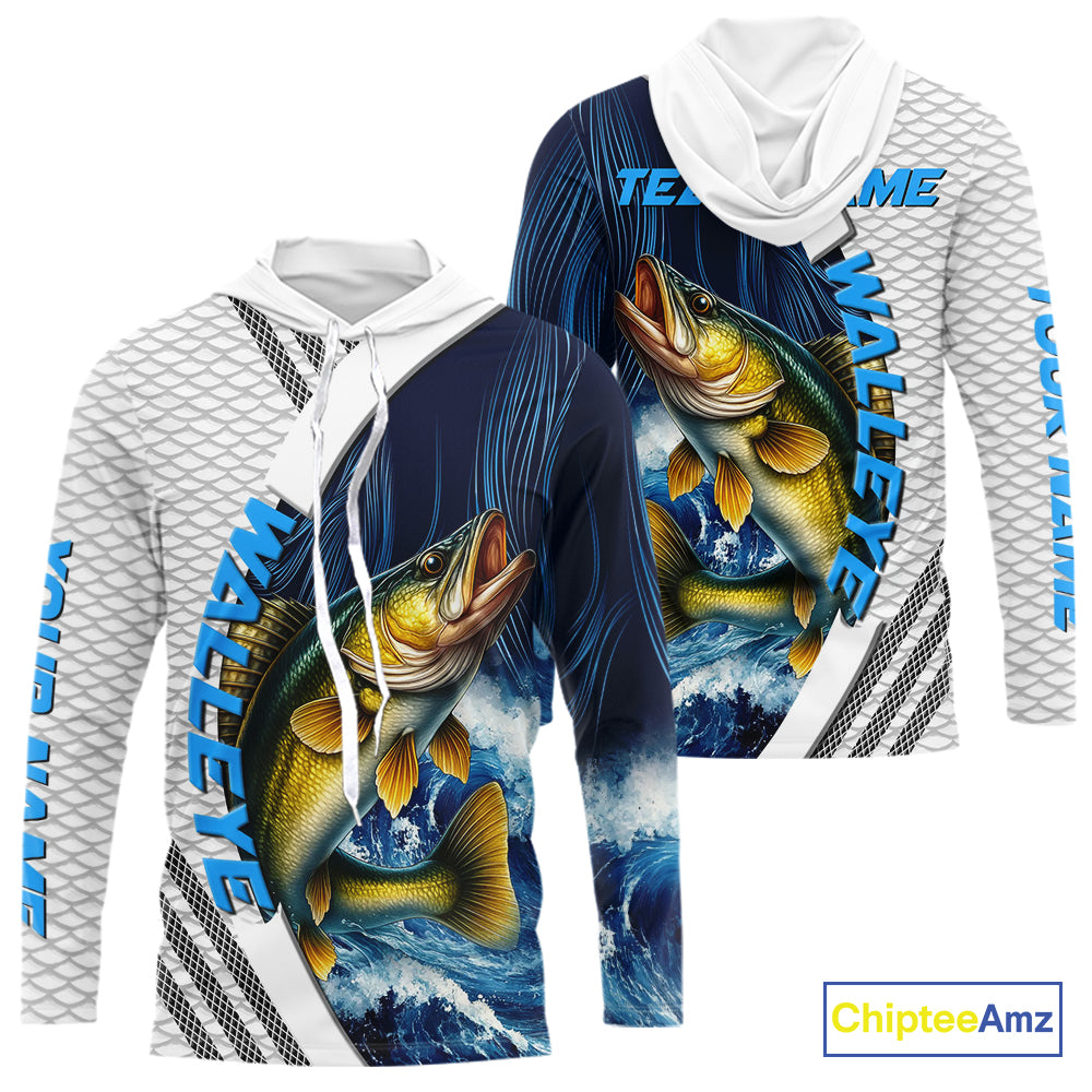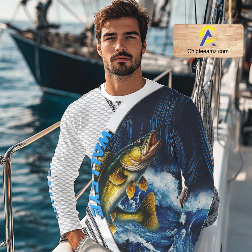 Blue and White Camo Walleye fishing Custom name sun protection Walleye fishing team jerseys NQS10556