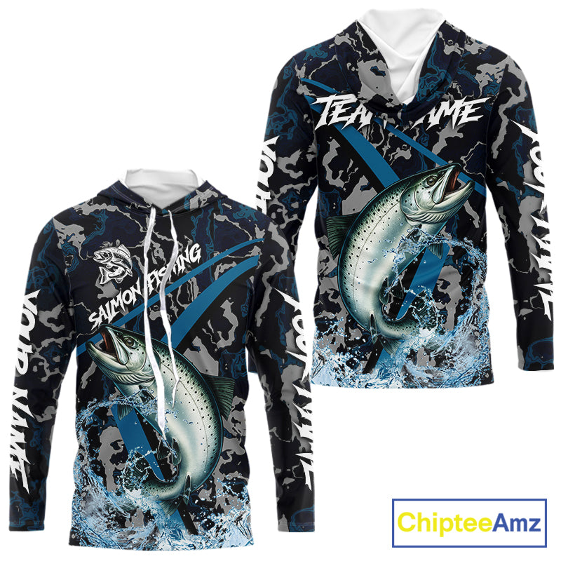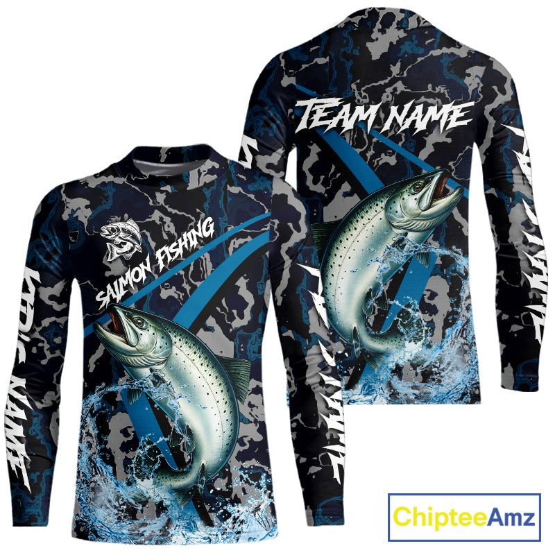 Custom Chinook Salmon Fishing Camo Long Sleeve Fishing Shirts, Personalized Salmon Fishing Team Jersey NQS9939