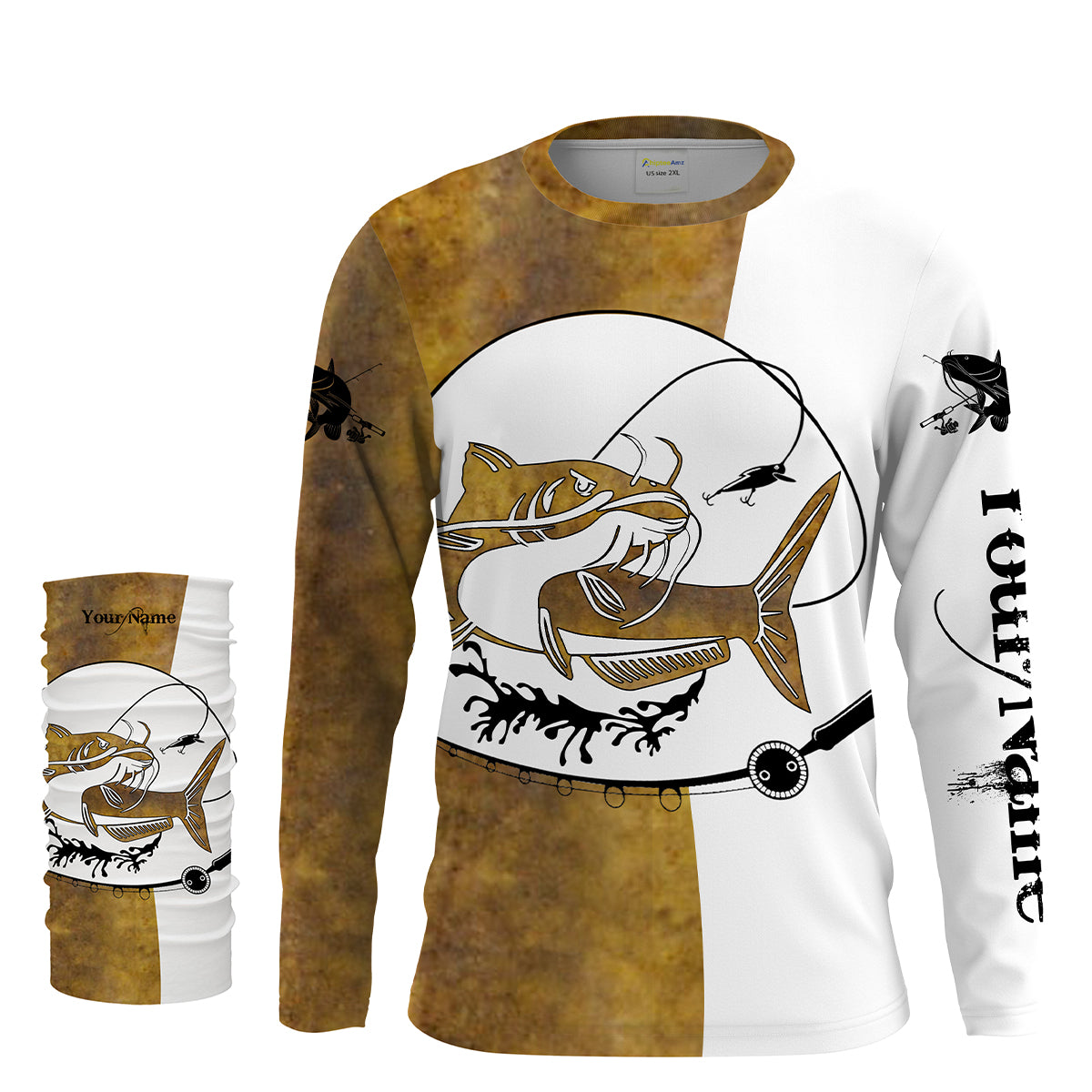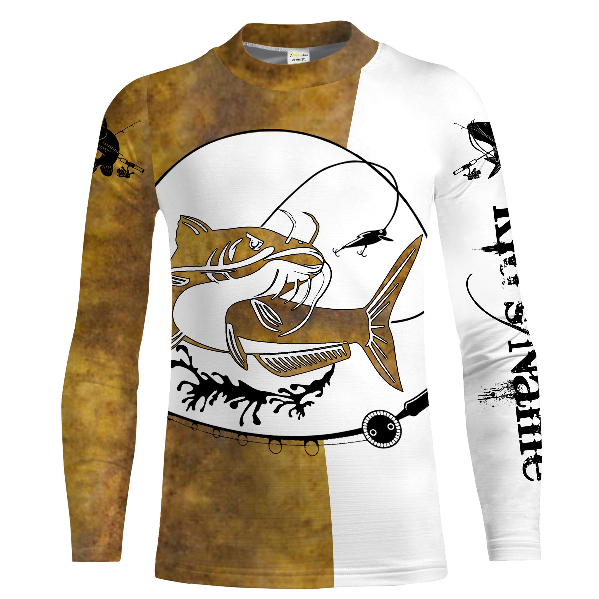 Flathead catfish Fishing scales Custom white Long sleeve performance Fishing Shirts, apparel for team catfish - NQS2080
