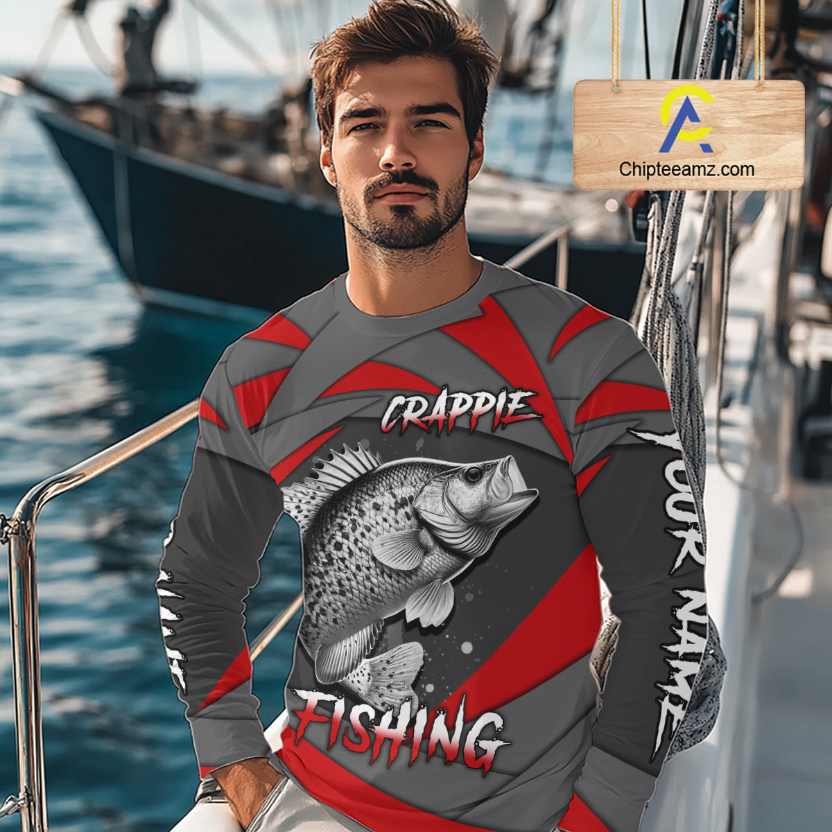Gray and Red Crappie Fishing Jersey Custom Crappie Fishing Shirt for Team, personalized fishing gifts NQS10898
